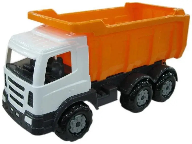 Большой самосвал на трех металлических осях с открывающимся задним бортом для разгрузки. В кузов ребенок может сложить все свои песочные принадлежности или детали конструктора, машинки и другие игрушки. В кабину в качестве водителей малыш посадит свои фигурки. Каждый мальчишка желает иметь у себя в автопарке большой самосвал.