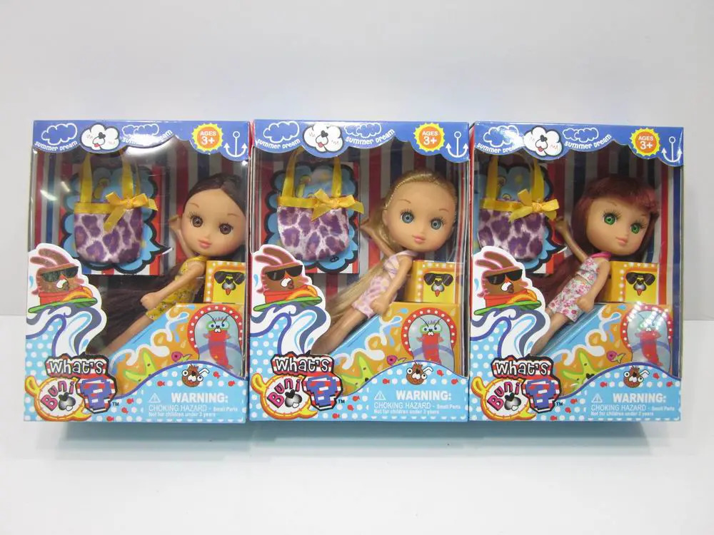 Кукла 17см, в наборе с сумочкой, 3 вида, пластмасса