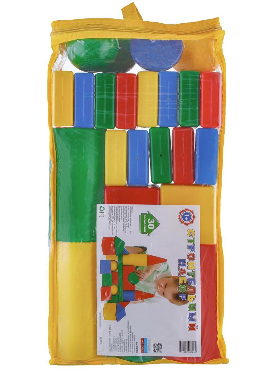 Кубики пластмассовые "Строительный набор 30 элементов, в пакете, 24*15*48 см