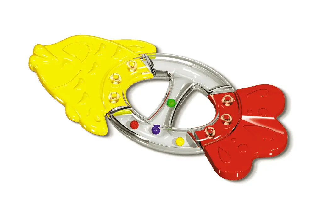 Малыши часто отказываются от обычных прорезывателей, потому что они им просто надоедают. Но если прорезыватель совмещен с погремушкой, то такая игрушка станет надолго любимой для младенца. Она будет развивать его и поможет снять боль в деснах. Погремушка имеет удобную для захвата форму кольца, на котором расположены разноцветные прорезыватели. Малыш может трясти игрушку, издавая звуки; грызть ее и наблюдать за движением шариков внутри.