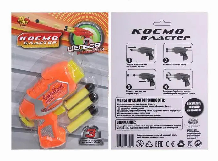 Космобластер, в наборе с 3 мягкими снарядами.Размер упаковки (д/ш/в): 23x15x6 см.