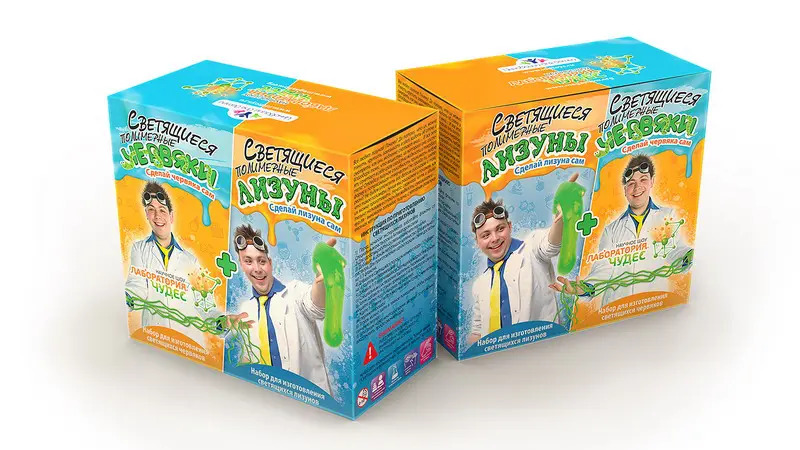 Набор Светящиеся лизуны и червяки (2 в 1) можно сделать с помощью двух волшебных жидкостей.Проведи опыт и посмотри как они светятся в темноте!