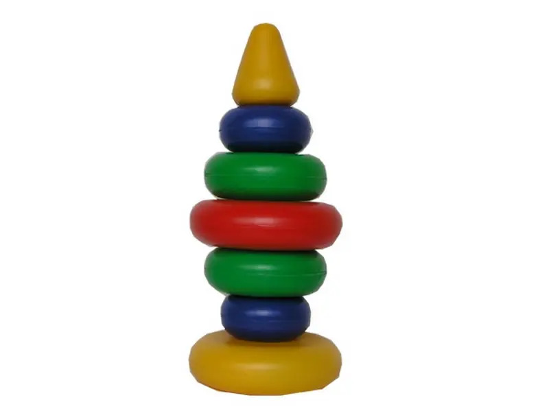 Пирамидка выдувная «Радуга 6К» состоит из 6 колец разного цвета и размера и предназначена для детей в возрасте от двух . Основание пирамидки имеет вершину в форме конуса.Особенность этой разновидности игрушки в том, что кольца собираются не в порядке уменьшения размера, а сортируются определенным образом по величине и цвету.