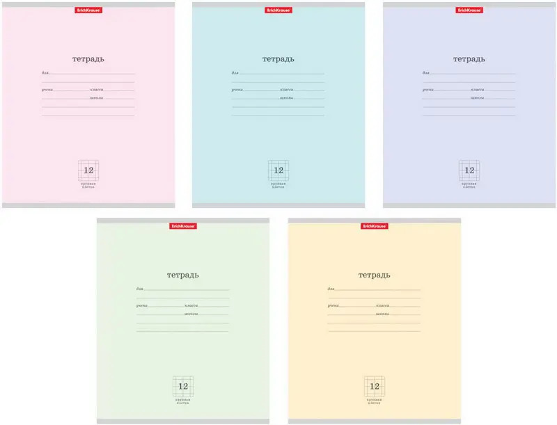 Тетрадь школьная ученическая формата А5 (170х203 мм). Обложка из высококачественного мелованного картона плотностью 170 г/м2. В блоке 12 листов в крупную клетку с полями. Бумага офсетная плотностью 45 г/м2. Цвет линовки - синий. Скругленные уголки обложки и блока. Тип скрепления - скоба. Тетради одного цвета упакованы в термоусадочную пленку по 10 штук. Товар поставляется в нескольких вариантах цвета без возможности выбора.