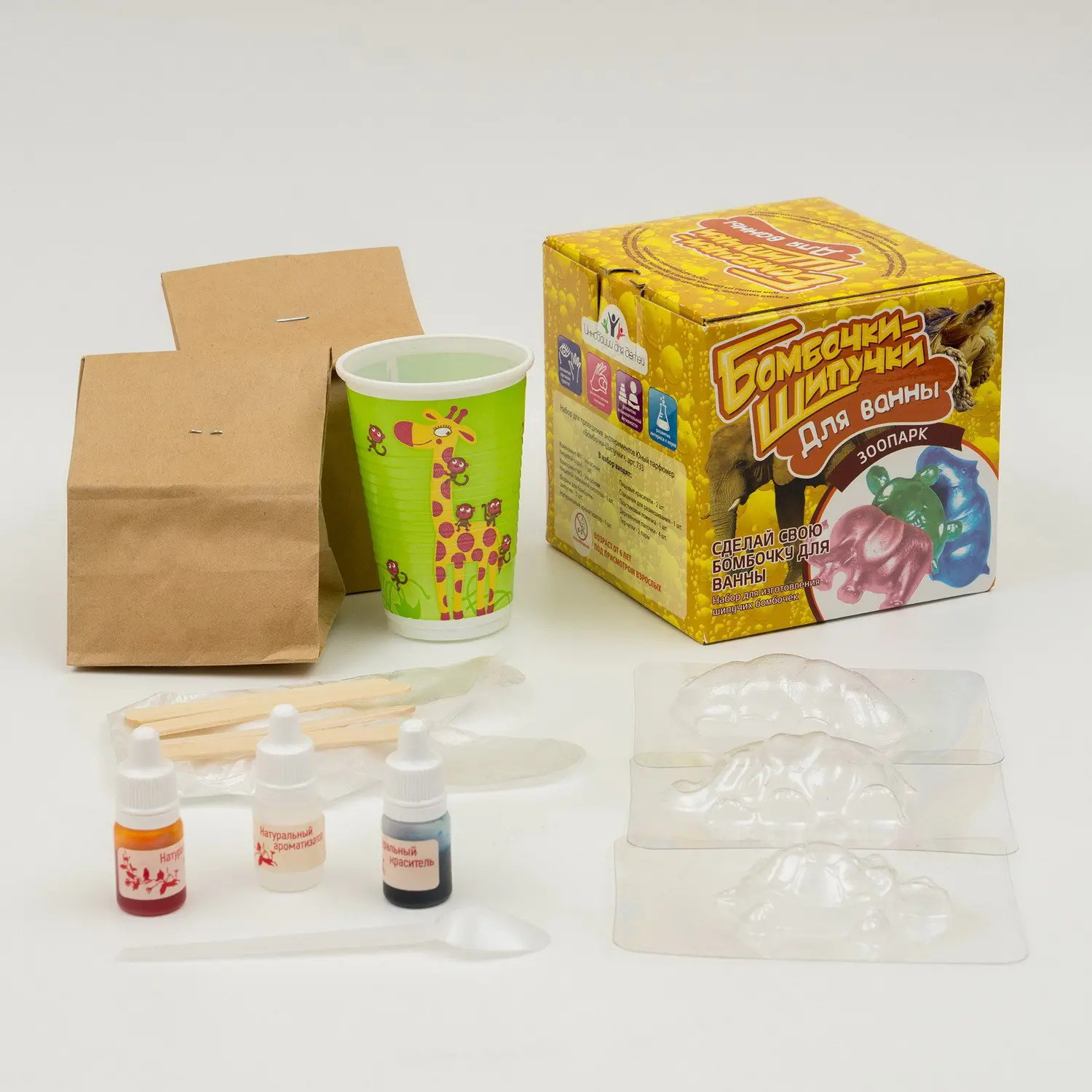 С набором Бомбочки-Шипучки "Зоопарк" вы сможете сделать ароматные и разноцветные бомбочки для ванны в виде животных . В набор входят только натуральные компоненты)Состав: Лимонная кислота, сода пищевая, ароматизатор, красители 2шт, формы 3 шт.