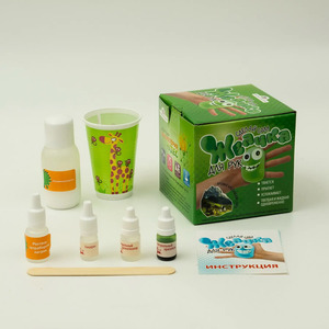 С набором "Жвачка для рук" вы сможете провести уникальный опыт превращения нескольких жидкостей в эластичную и ароматную жвачку! Полученную жвачку можно назвать неньютоновской жидкостью, так как она имеет одновременно жидкое и твердое состояние.