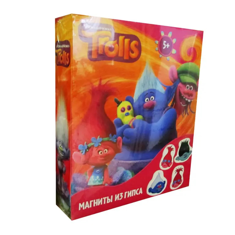 Набор для изготовления магнитов из гипса "Тролли", в наборе: гипс 350 г, краски акварельные 6 цв, кисть, пластиковый корекс на 4 формы, магнитная лента, инструкция.