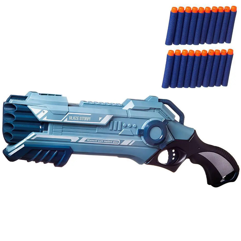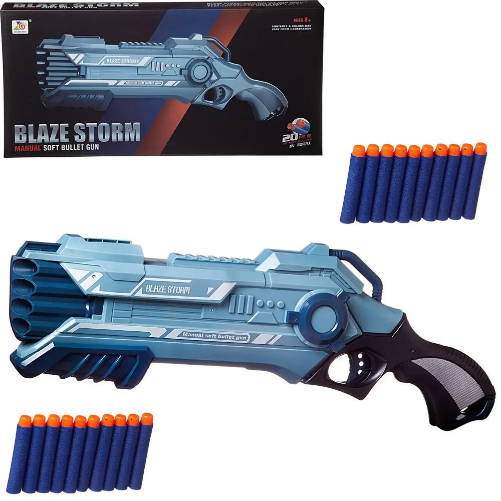 Бластер "Blaze Storm" серо-голубой с 20 мягкими пулями, в коробке