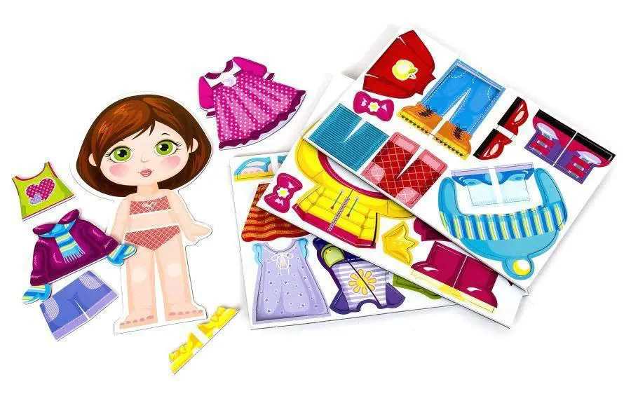 Это магнитная история про то, как одеть куклу Настю. Она простая, но при этом очень увлекательная и не вызовет сложности у ребенка старше 3-х .В магнитной игре «Одевашки. Настя» предлагается одеть куклу Настю в соответствии с погодой за окном или просто по желанию и настроению ребенка. Игра состоит из 32 элементов - фигурки куклы Настя (размером 215х120 мм) и четырех наборов элементов одежды. Все предметы одежды легко фиксируются на фигурке.