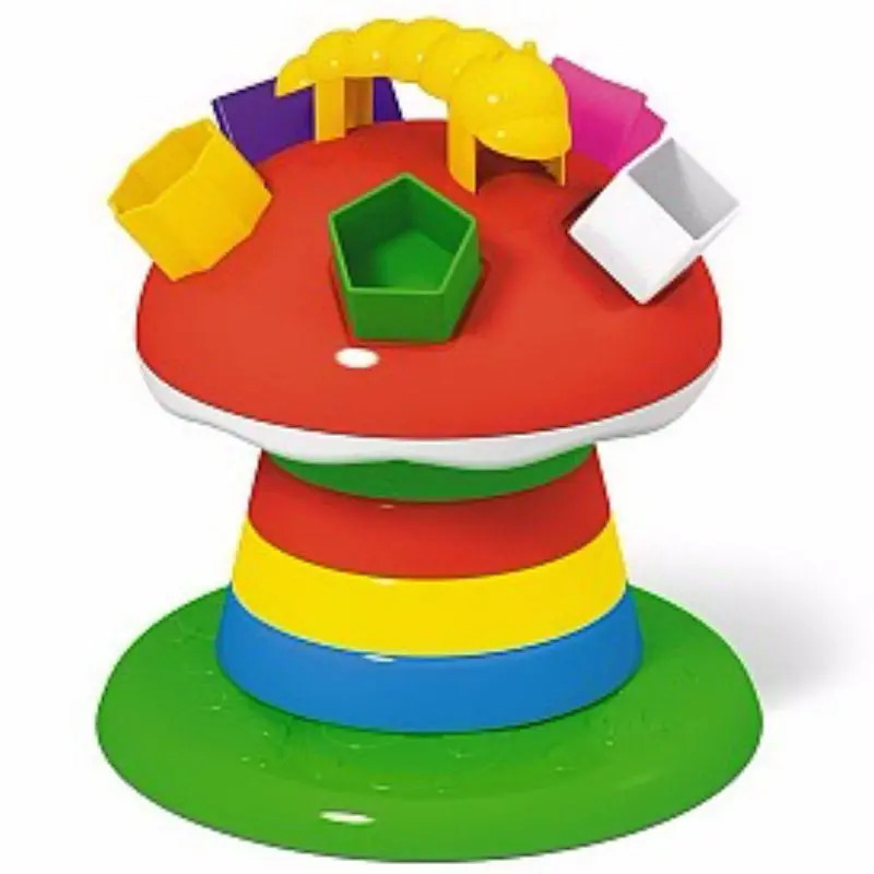Логическая пирамидка «Гриб на полянке» - это две игрушки в одной. Основание, это обычная пирамидка, а шапочка гриба выполнена в виде сортера. Для удобства малышей, которые любят таскать за собой игрушки по комнате, на шапочке гриба поселилась гусеничка-ручка.Пирамидка имеет толстый стержень с монолитным основанием, 3 удобных для захвата кольца и устойчивую полянку-подставку. Фигурки сортера сделаны с учетом возможностей малышей. Играя с фигурками, ребенок научится различать цвета и формы.