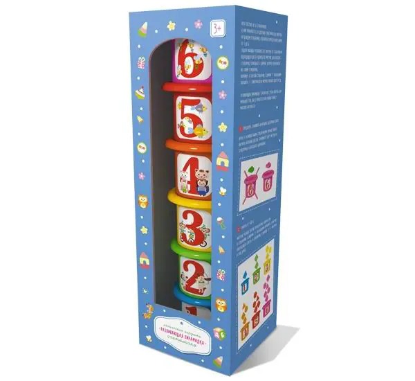 Развивающая пирамидка «Считалочка» - это оригинальная игра, которая состоит из 6 стаканчиков и 21 цветной геометрической фигурки. На каждом стаканчике изображена определенная цифра от 1 до 6. Задача малыша разложить все фигурки по стаканчикам подходящего цвета. Количество фигурок для каждого стаканчика совпадает с цифрой, которая изображена на самом стаканчике. Например, в голубой стаканчик с цифрой «1» необходимо положить 1 геометрическую фигурку голубого цвета и т.д.Развивающая пирамидка «Считалочка» очень полезна для малышей, так как в процессе игры ребенок сможет многому научиться: определять, сравнивать и находить идентичные цвета; считать и распознавать цифры от 1 до 6; подбирать стаканчики по размеру, а также отличать геометрические фигуры. В игре представлены 5 видов геометрических фигур: круг, треугольник, квадрат, трапеция и шестиугольник. В процессе игры малыш без труда научится различать фигуры и выучит их названия.