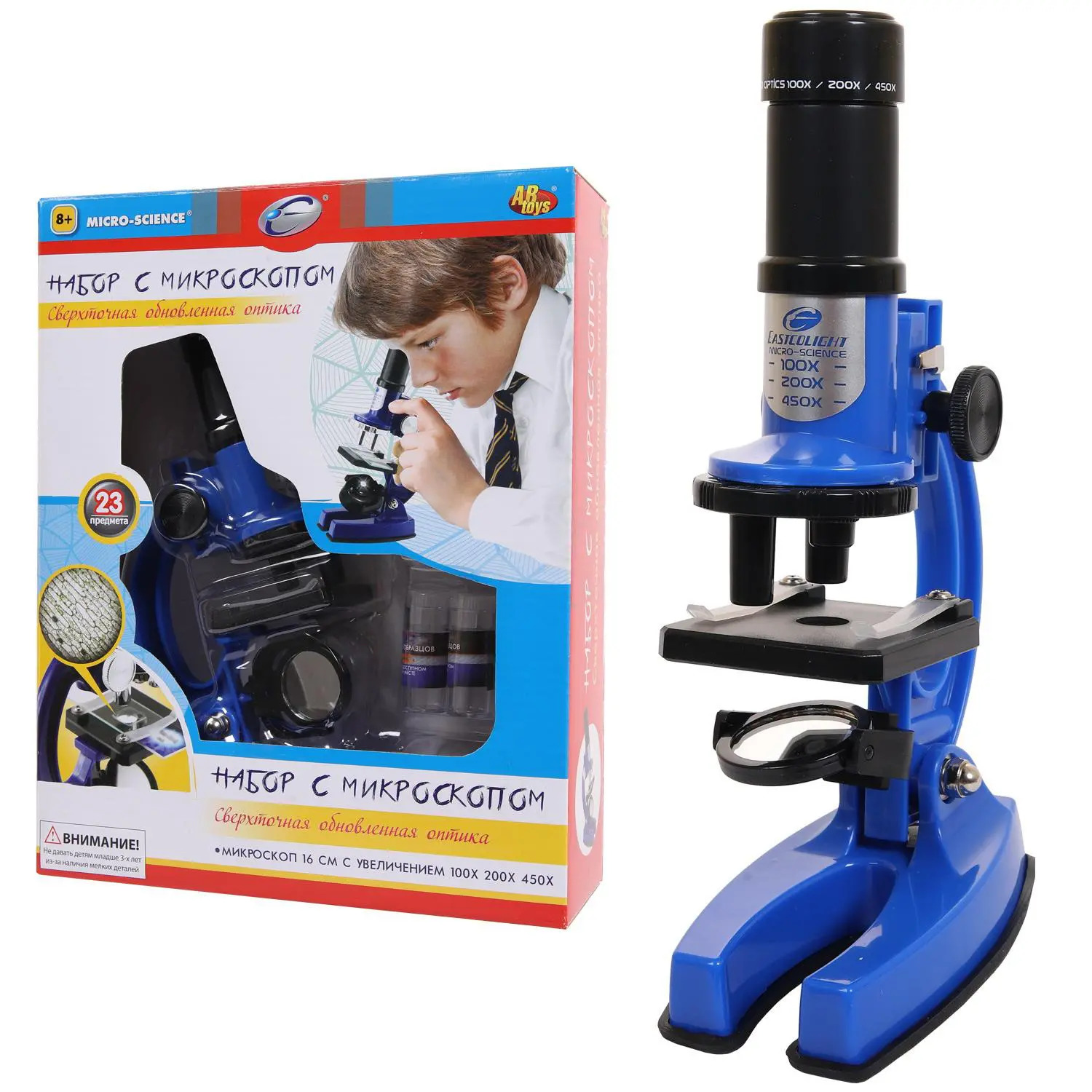 Микроскоп c аксессуарами увеличение 100х200х450х, 23 предмета, синий, металл, пластмасса