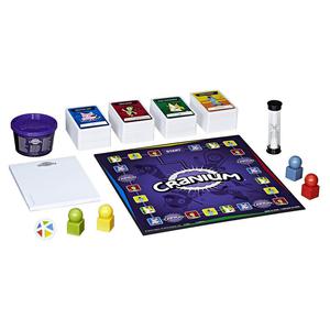ИГРЫ ХАСБРО. Игра настольная КРАНИУМ. Цель игры – достичь центра поля быстрее чем команда соперников. Для передвижения по полю команда выполняет задания в зависимости от выпавшего цвета. В игре присутствуют следующие категории заданий: Игра слов (разгадать ребус; правильно произнести слово по буквам наоборот), Актерское мастерство (изобразить известную личность или персонаж; изобразить вид деятельности, используя игрока своей команды), Искусство (нарисовать объект на бумаге; слепить объект) и Знания (ответить на вопрос; правда или ложь). Подходит для 4+ игроков. Возраст 16+