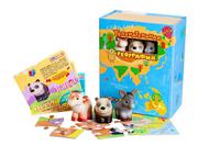 Три резиновые игрушки в комплекте отображают типичного животного материка. В Азии это осел, панда и верблюд