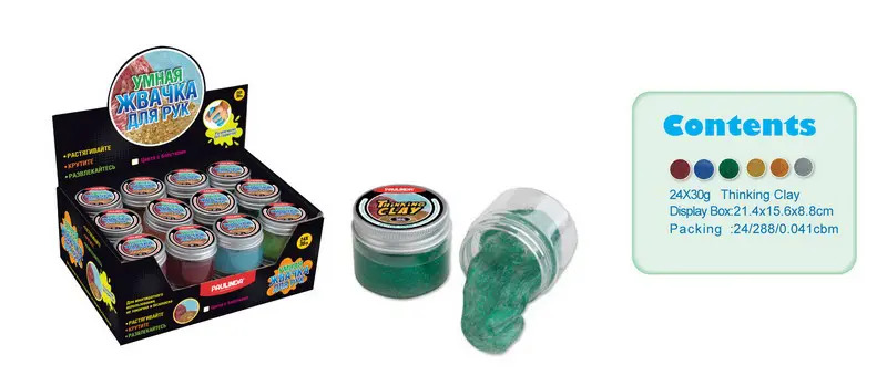 Игрушка-антистресс PAULINDA Жвачка для рук Цвета с блестками, объем 30 гр., 24 штуки в дисплее