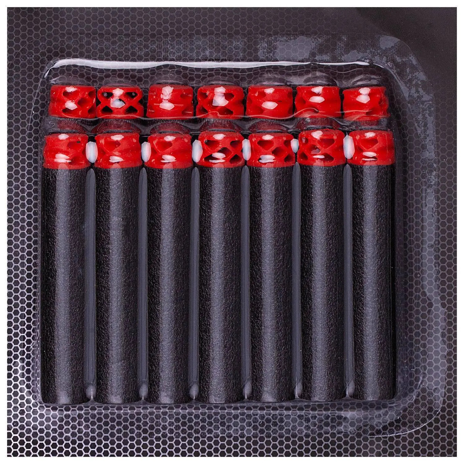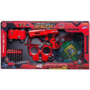 Бластер красно-черный в наборе с аксессуарами и мягкими снарядами 14 шт