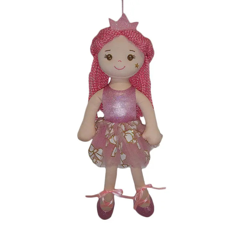 Мягкая кукла принцесса в розовом блестящем платье и короной, 38 см