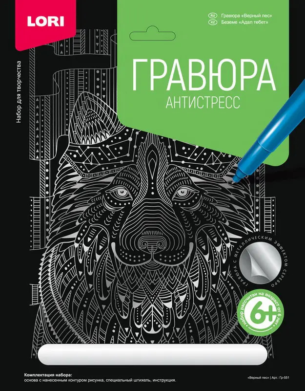 Гравюра Антистресс большая с эффектом серебра "Верный пес"