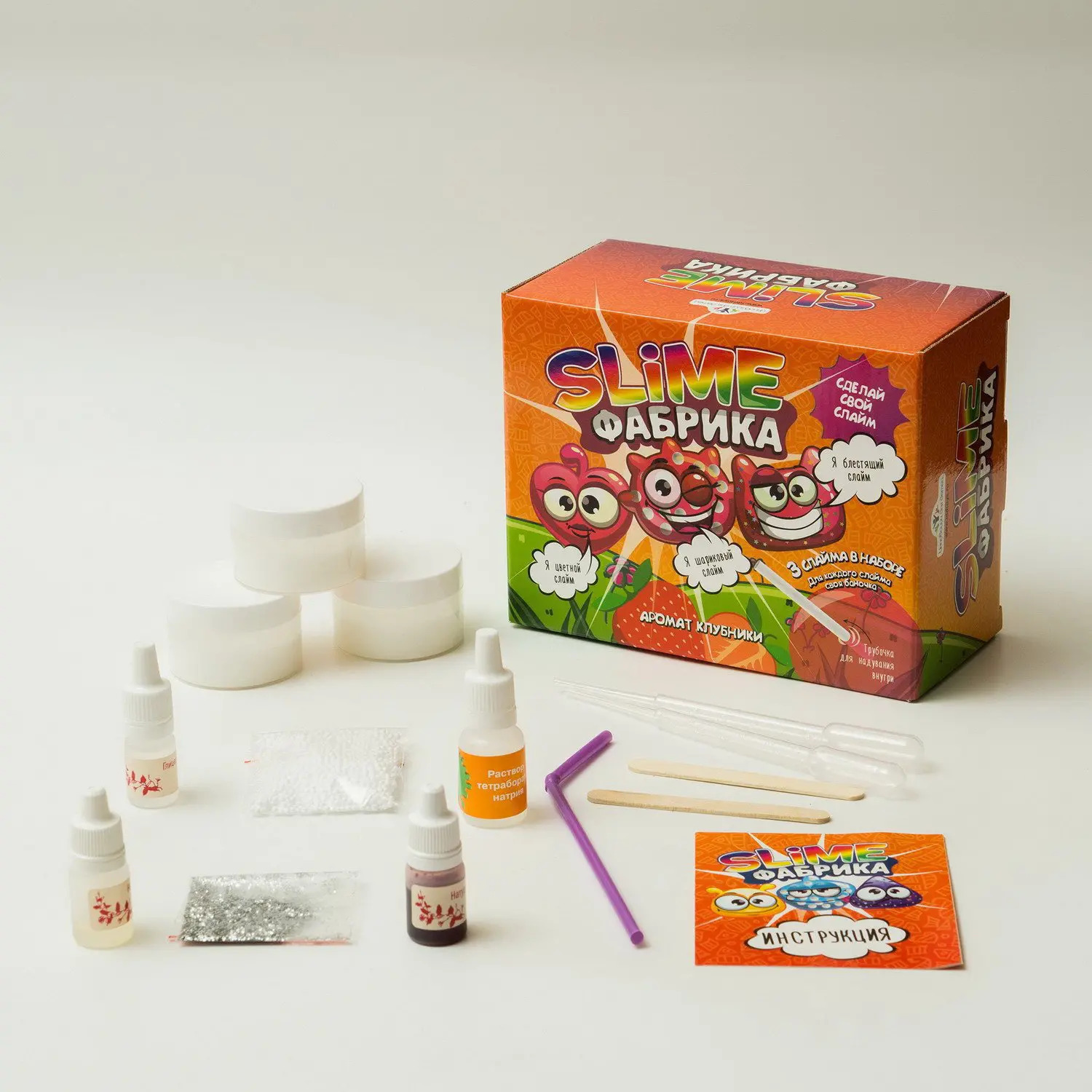 Слайм фабрика "Клубника" Набор для опытов и экспериментов Юный Химик, 3 слайма в наборе. Тянется, лепится, прыгает, прекрасный антистресс.