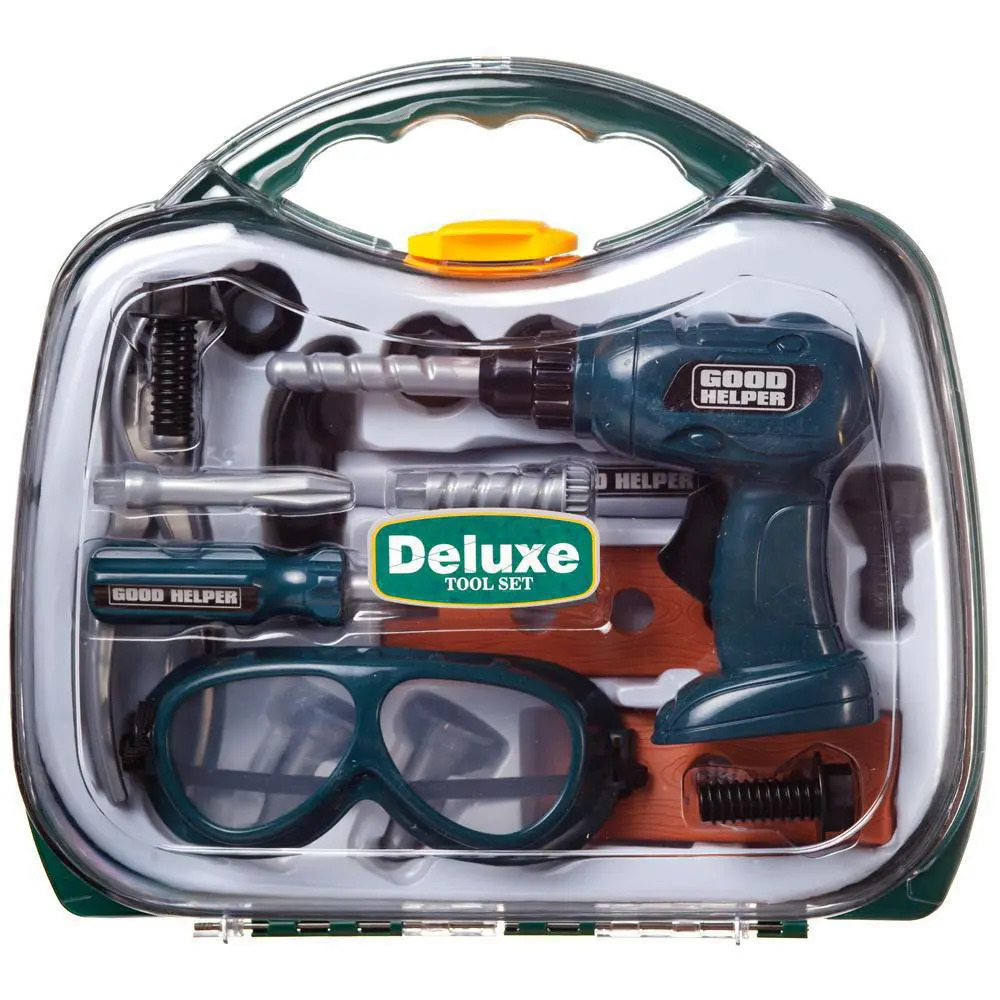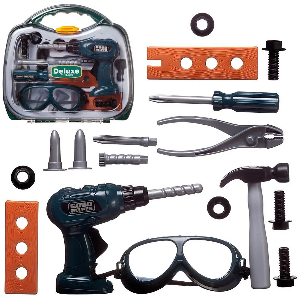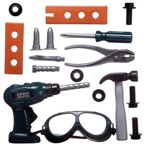 Набор инструментов содержит все необходимые инструменты, чтобы починить любую поломку и стать мастером на все руки! Все предметы набора сделаны из пластика и безопасны для игры. При этом, их внешний вид в точности повторяет внешний вид настоящих инструментов, так что на примере игрушек можно объяснить ребенку зачем нужен каждый инструмент и дать понять, как им пользоваться.Комплектность: чемоданчик – 1 шт., дрель – 1 шт., сменные насадки – 3 шт., молоток-гвоздодёр – 1 шт., очки защитные – 1 шт., отвёртка – 1 шт., крепёж – 2 шт., пассатижи – 1 шт., болт – 3 шт., шайба – 2 шт., гвоздь – 2 шт.