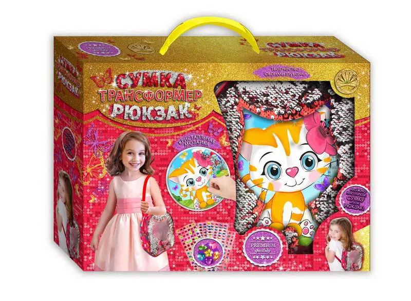 Набор для творчества Лапландия Сумка рюкзак трансформер с пайетками с мозаикой календарем на стол КОТ