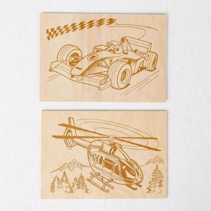 Доски для выжигания 2 шт Вертолет и Гоночный автомобиль (блистер)