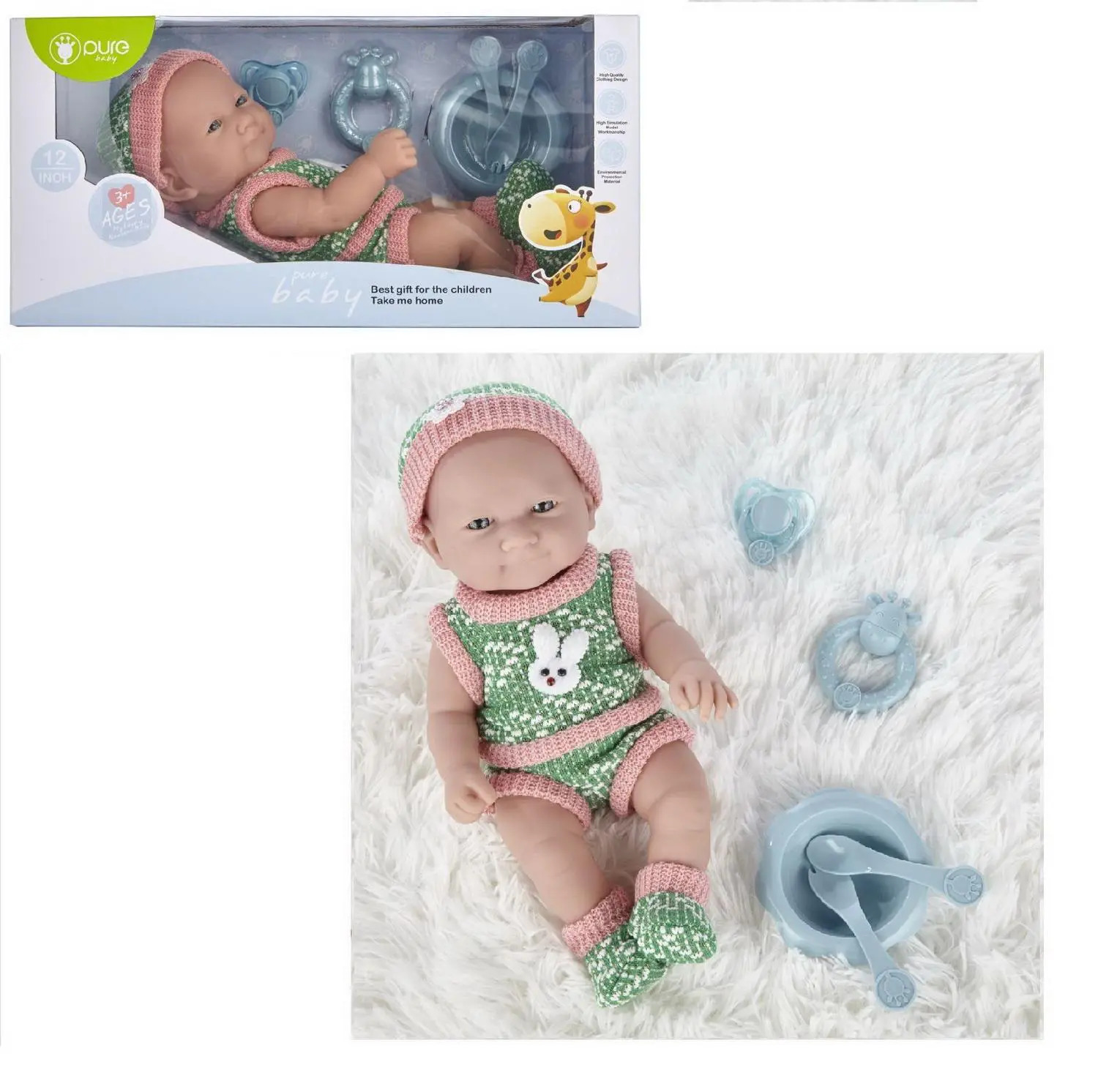 Пупс JUNFA Pure Baby 30см в зеленых кофточке, шортиках, шапочке и носочках, с аксессуарами