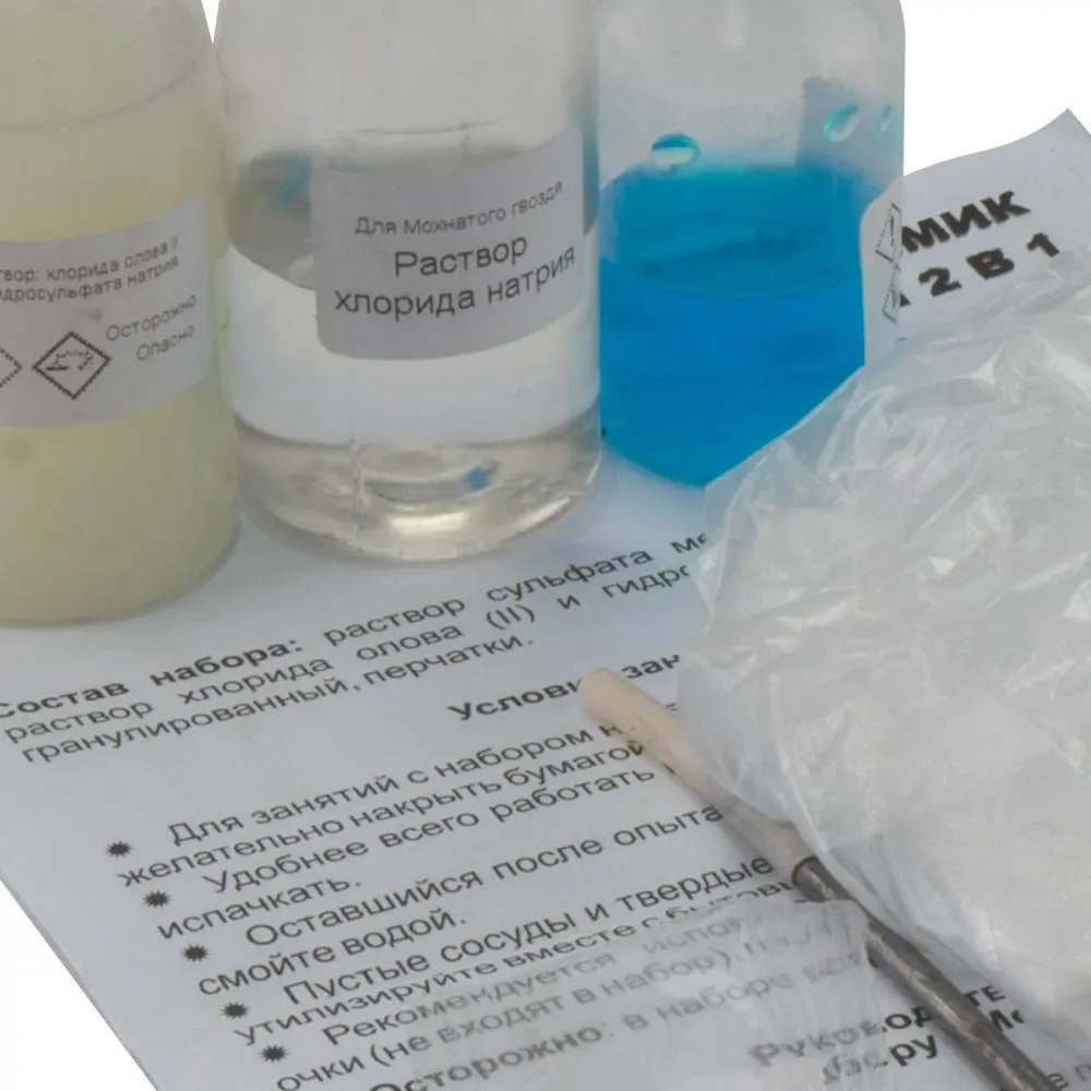 Набор для опытов LORI Алхимик Химические опыты 2 в 1 "Мохнатый гвоздь и Оловянная губка"