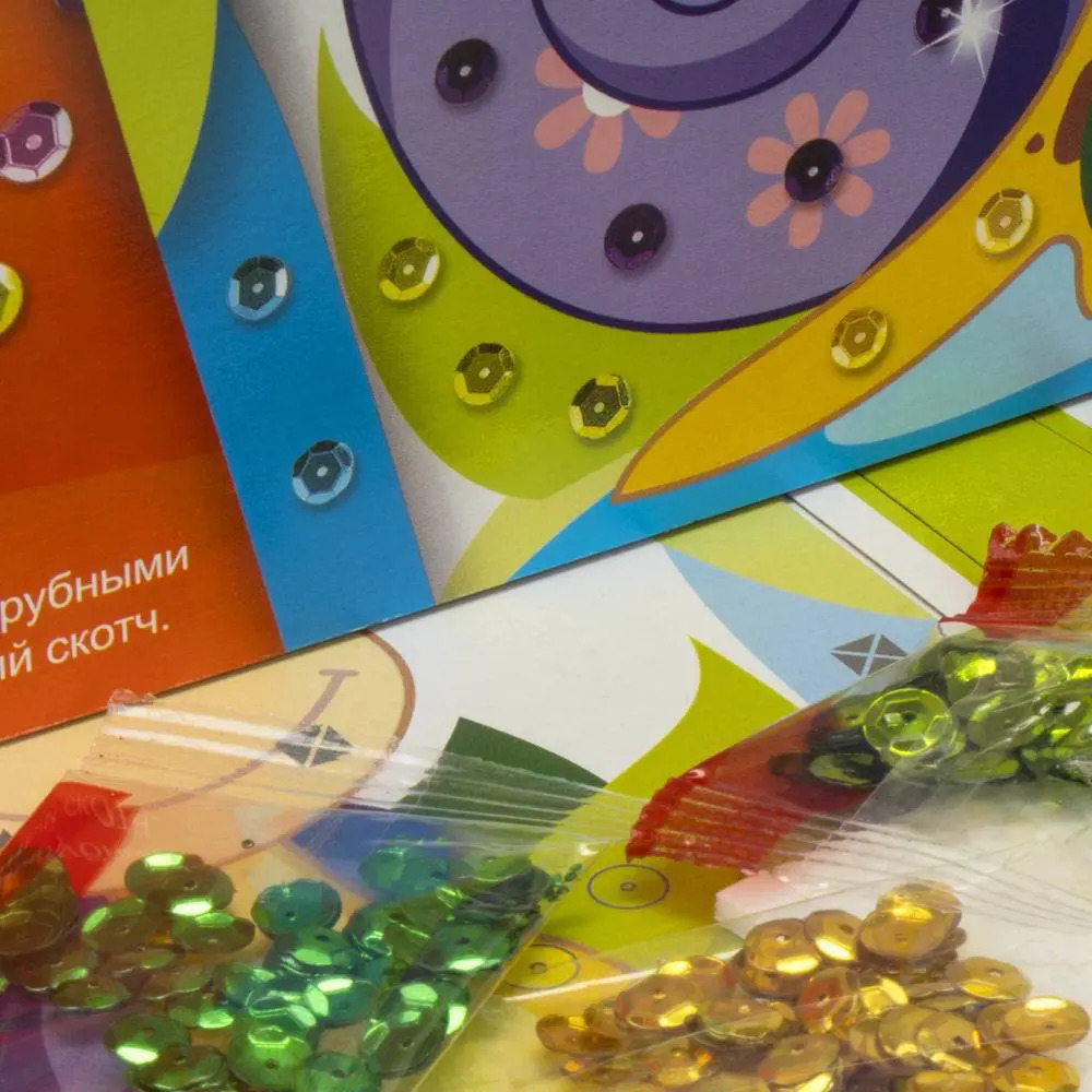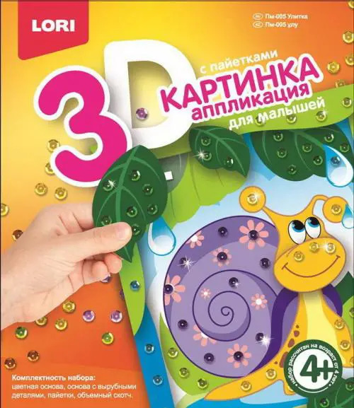Картинка 3D.Аппликация для малышей с пайетками "Улитка"