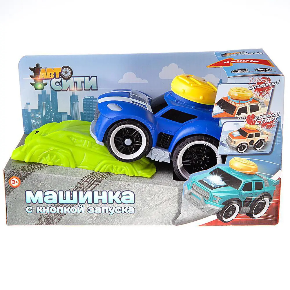 Игры с машинками не только любимое занятие для всех мальчишек, но и важный элемент их взросления. «Авто Сити» представляет машинку с большой желтой кнопкой запуска на крыше: ВКЛЮЧИ - НАЖМИ - СТАРТ! Нажми на кнопку и машинка отправится в свой путь, преодолевая препятствия.В комплекте набора: гоночная машинка (синяя) и трамплинный блок-препятствие. Машинка имеет световые и звуковые эффекты.