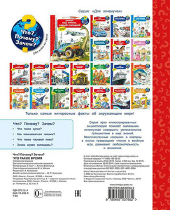 Иллюстрированная энциклопедия "Что? Почему? Зачем? Что такое время", выпущенная в серии "Для почемучек" издательства "Омега", расскажет много интересного о таком необычном и удивительном понятии, как Время.Издание можно использовать в качестве оригинального учебного пособия для детей младшего школьного возраста, которое непременно заинтересует ребенка и покорит сердце взрослого, поможет превратить процесс получения новых знаний в очень интересное и увлекательное занятие.