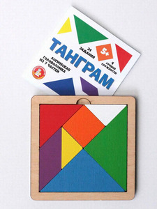 Логическая головоломка, в которой игроку предстоит складывать определённые фигуры из деревянных фишек геометрической формы. Состав: игровое поле (11,7 х 11,7 см), деревянные детали – 7 шт. (от 4,5 х 3,1 х 3,1 см до 6,6 х 6,6 х 9,4 см), буклет с заданиями. Материал: берёзовая фанера. 24 задания, 4 уровня сложности. Развивает логику, мелкую моторику, пространственное мышление. Цвет деталей: белый, жёлтый, оранжевый, красный, фиолетовый, синий и зелёный.