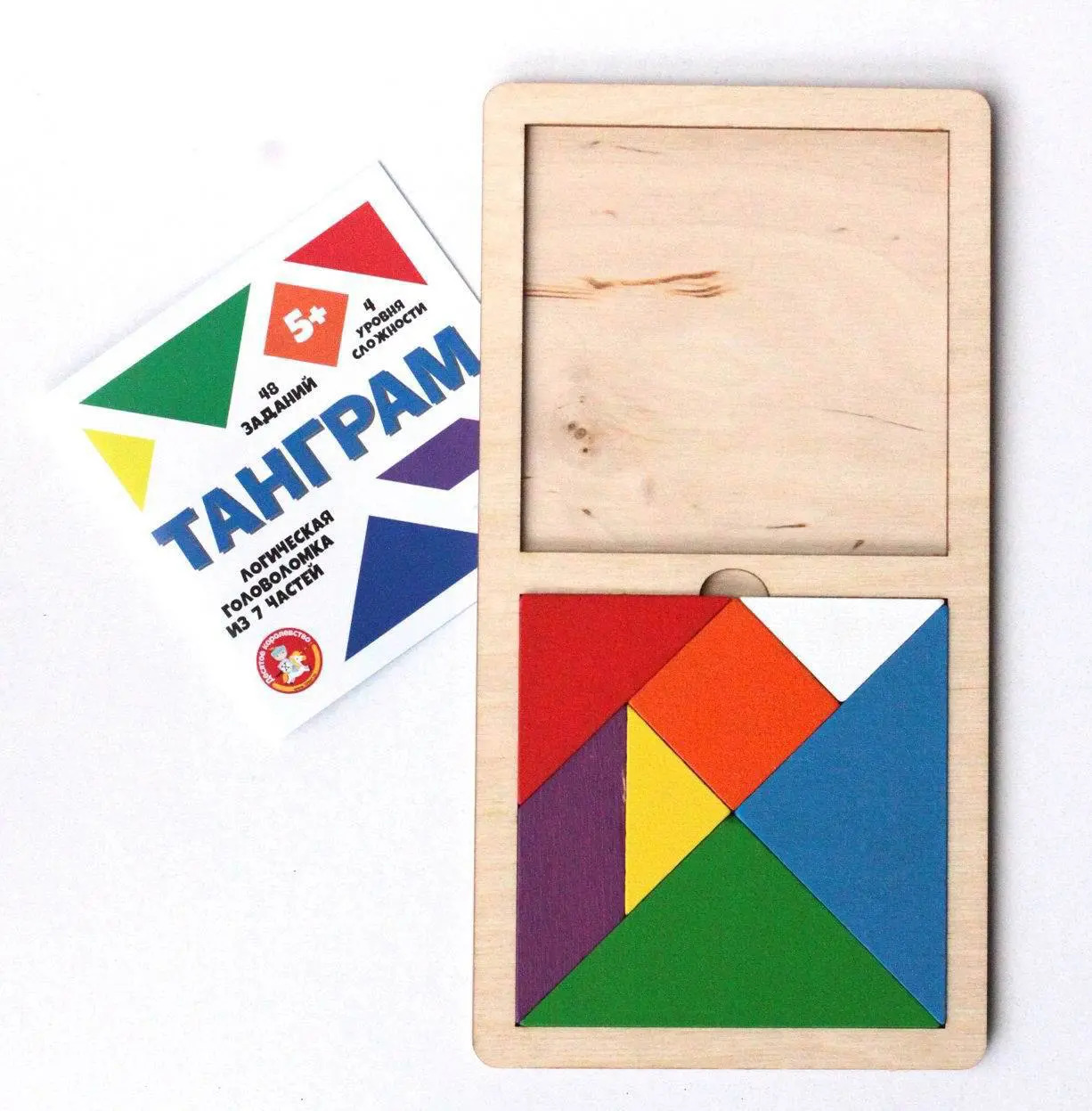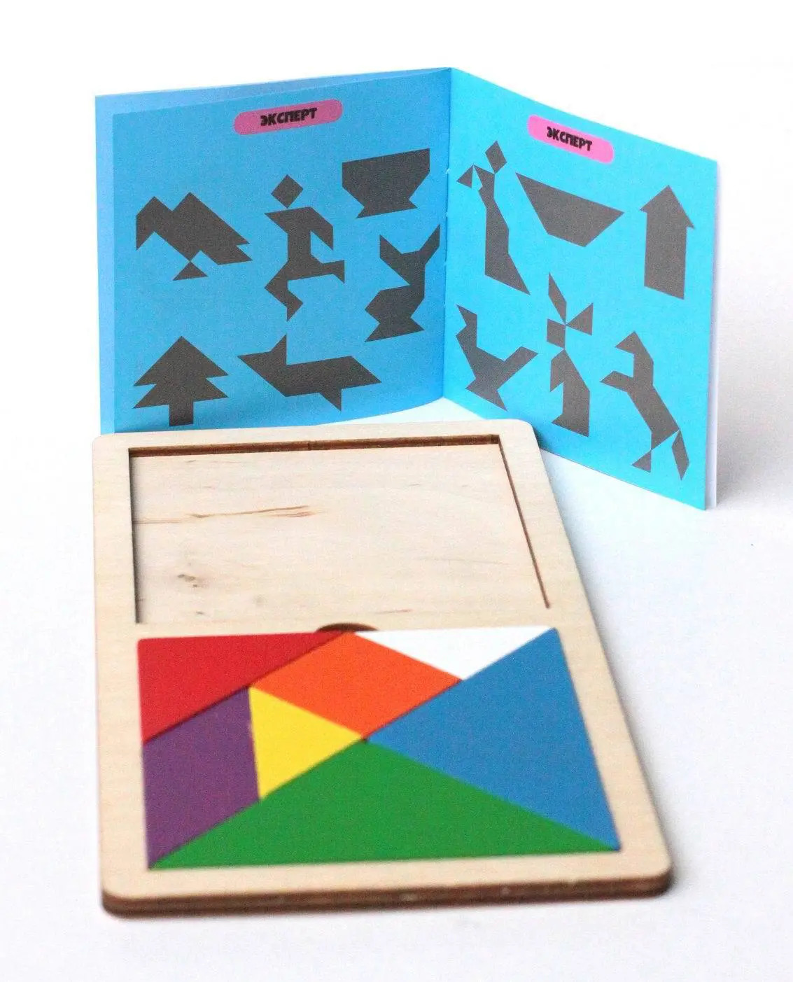 Логическая головоломка, в которой игроку предстоит складывать определённые фигуры из деревянных фишек геометрической формы. Состав: игровое поле (11,7 х 23 см), деревянные детали – 7 шт. (от 4,5 х 3,1 х 3,1 см до 6,6 х 6,6 х 9,4 см), буклет с заданиями. Материал: берёзовая фанера. 48 заданий, 4 уровня сложности. Развивает логику, мелкую моторику, пространственное мышление. Цвет деталей: белый, жёлтый, оранжевый, красный, фиолетовый, синий и зелёный.