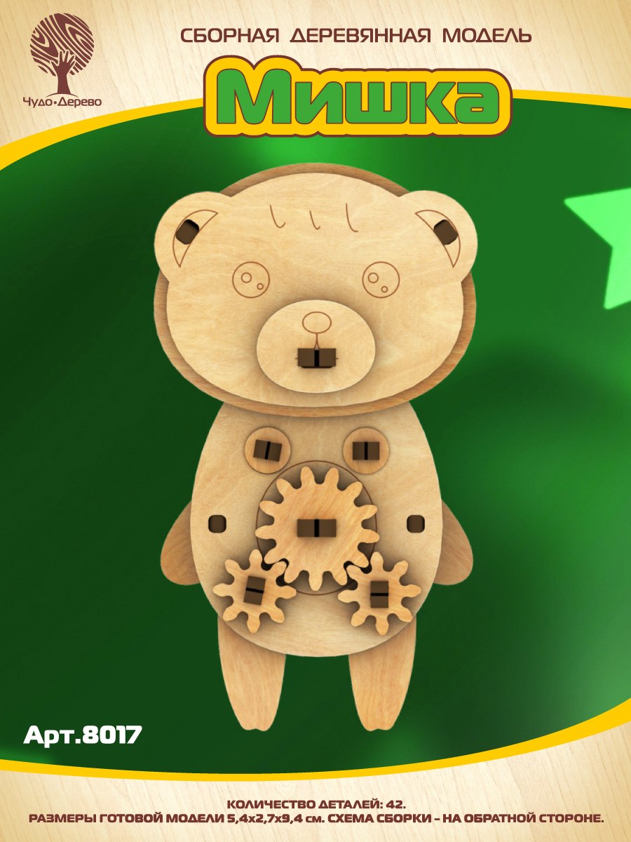 Сборная деревянная модель Чудо-Дерево с шестерёнками Мишка