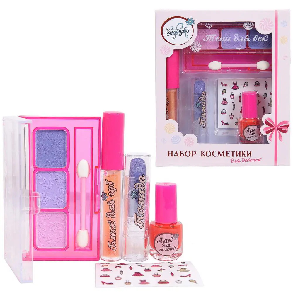 Набор косметики для девочек Зефирка "Будь ярче!" "Бабл-гам", с лаком для ногтей, блеском для губ, помадой и тенями для век