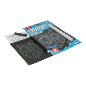 Гравюра - особый вид графического искусства. Сцарапывая верхний слой гравюры специальным штихелем, входящим в набор, ребёнок может самостоятельно создать настоящее произведение искусства и почувствовать себя гравером. Готовую гравюру можно вставить в упаковку-рамку. Размер гравюр 10*15 см.