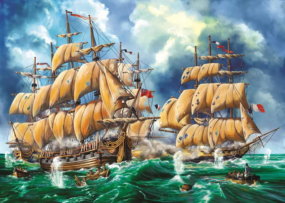 Набор для творчества Рыжий кот Палитра Холст с красками по номерам в коробке Морская битва 40 х 50 см