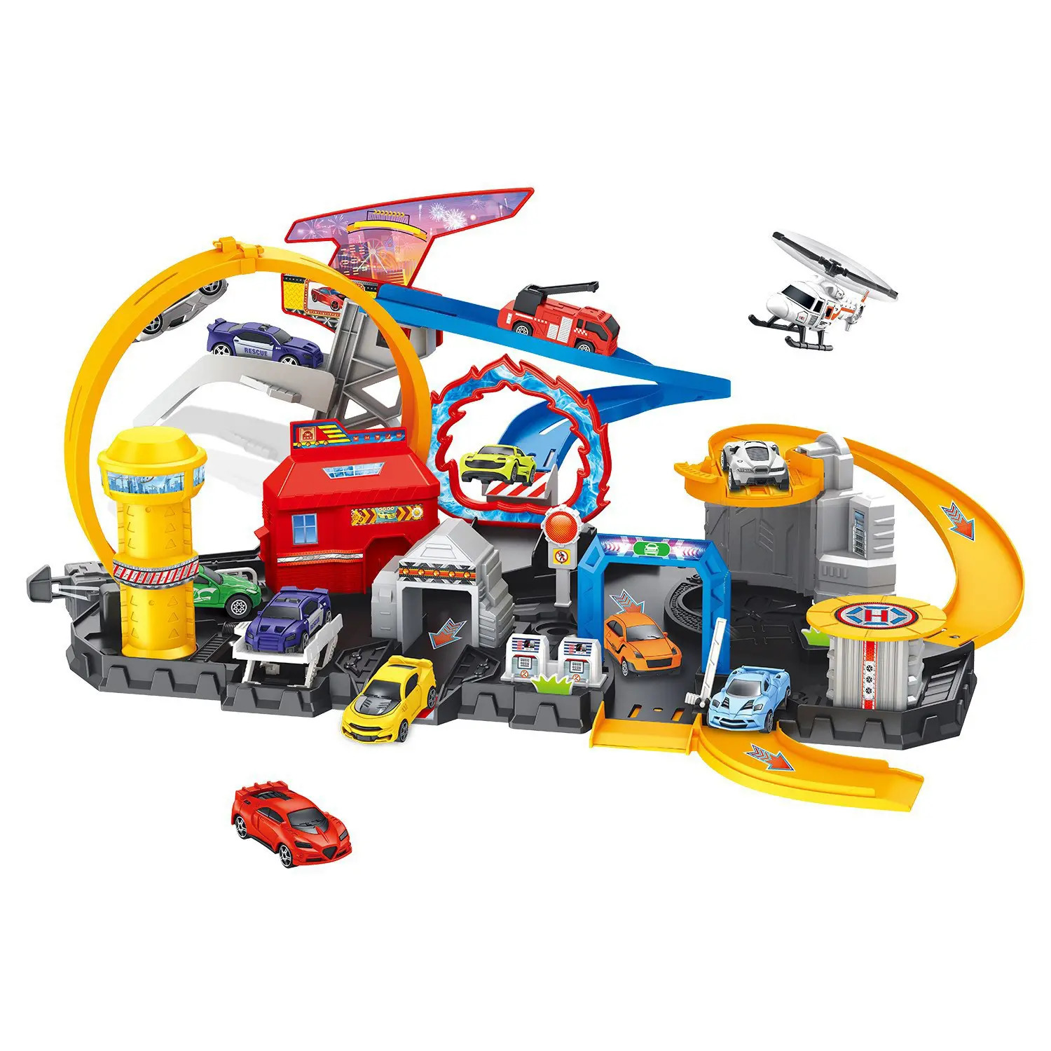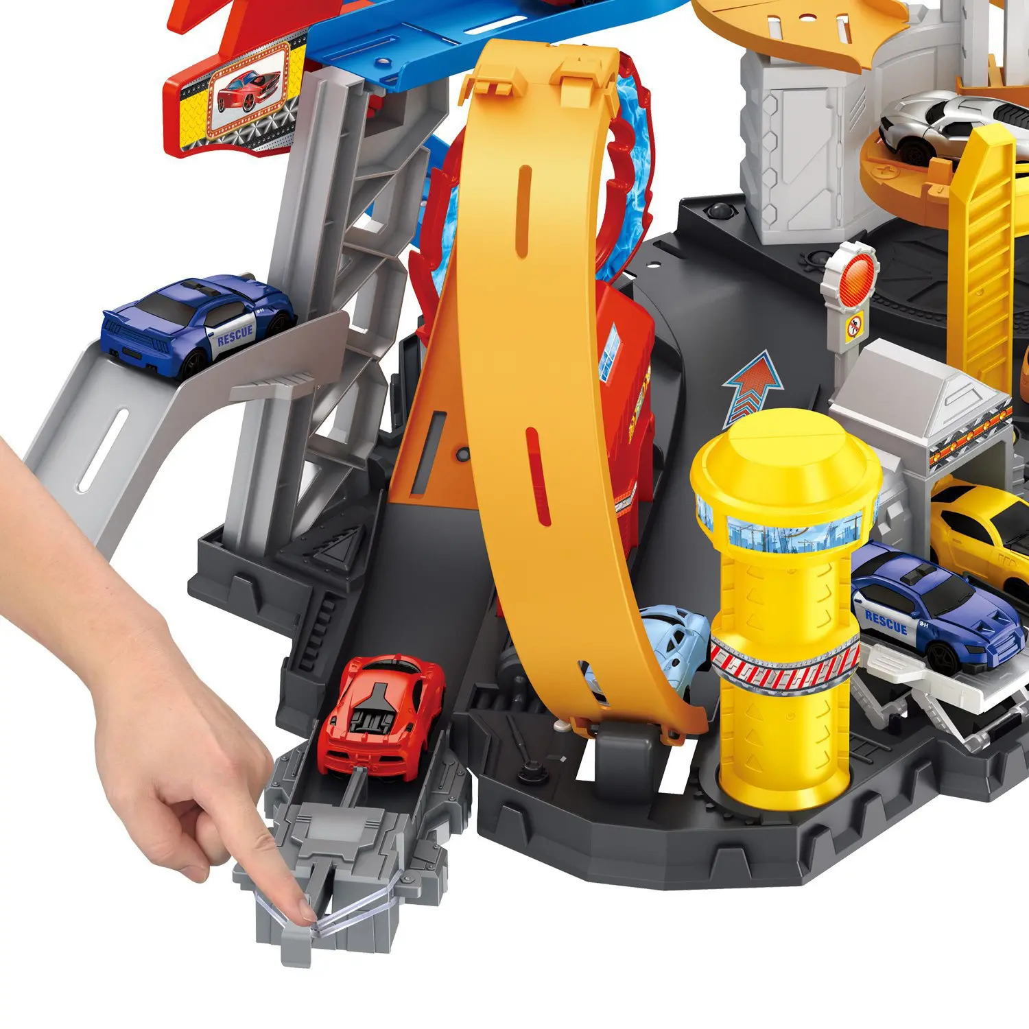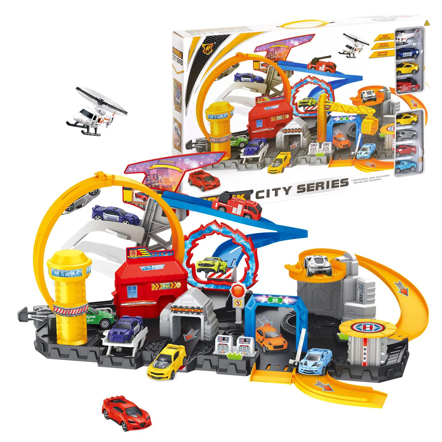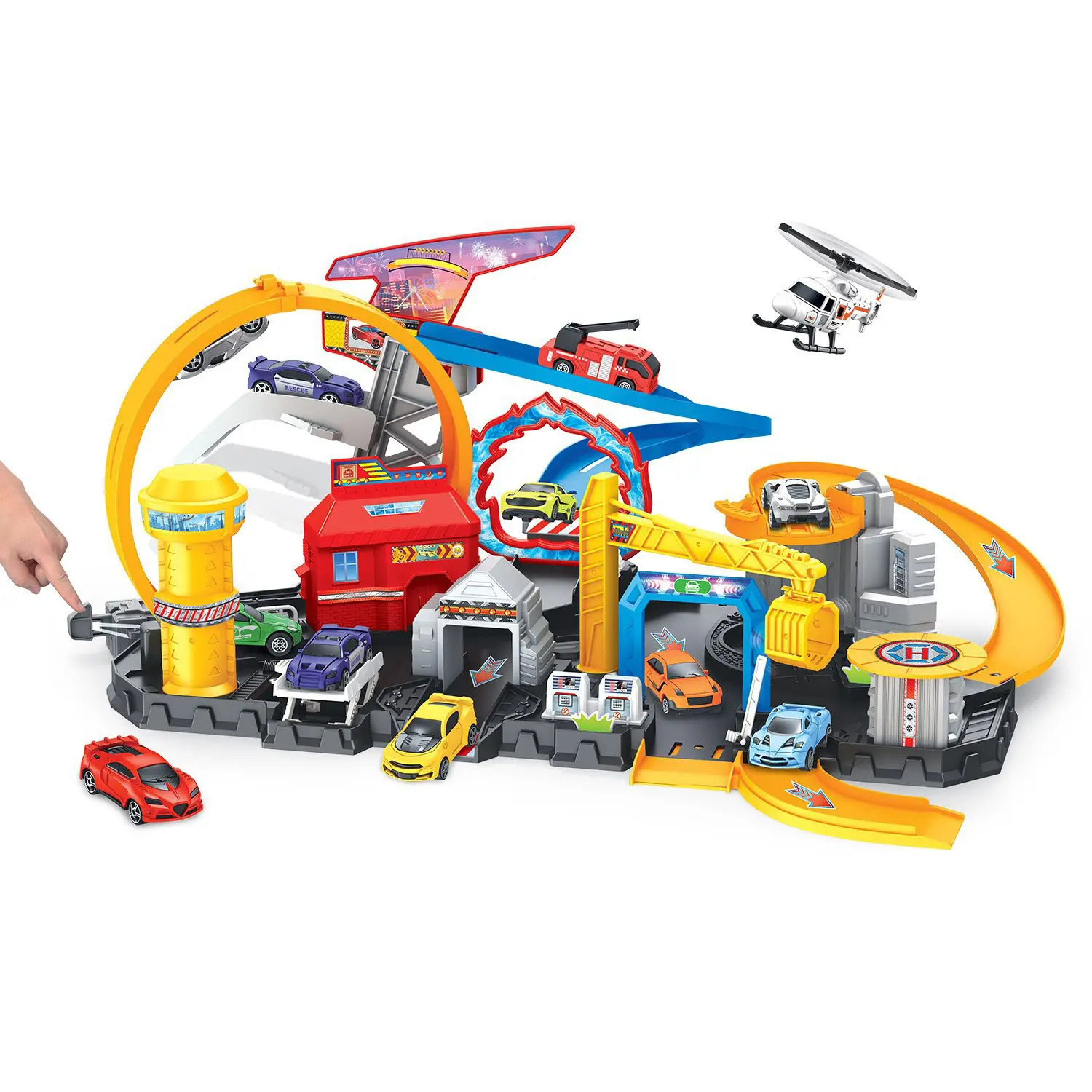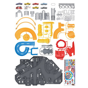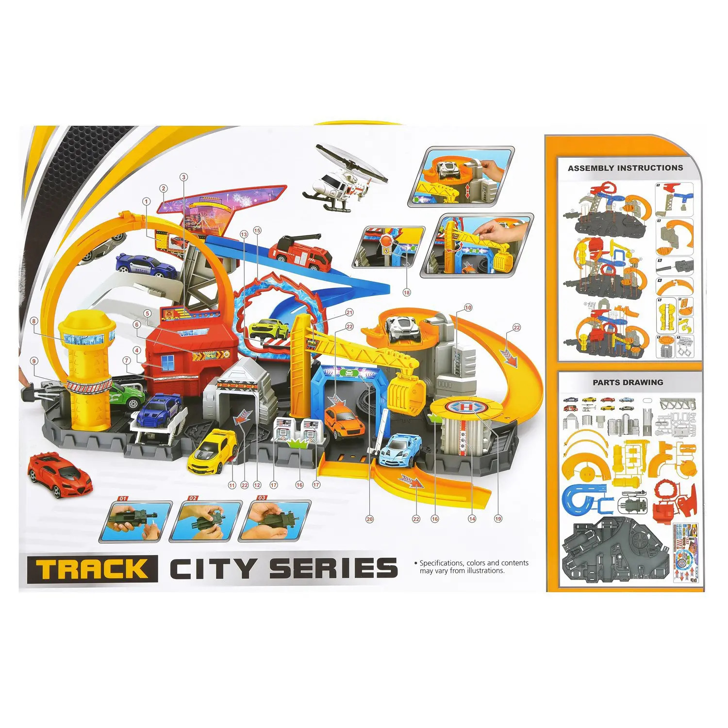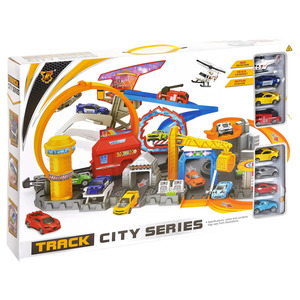 Комплектность: парковка-трек сборно-разборная (подробный состав указан на упаковке), машинка – 7 шт., вертолет – 1 шт.