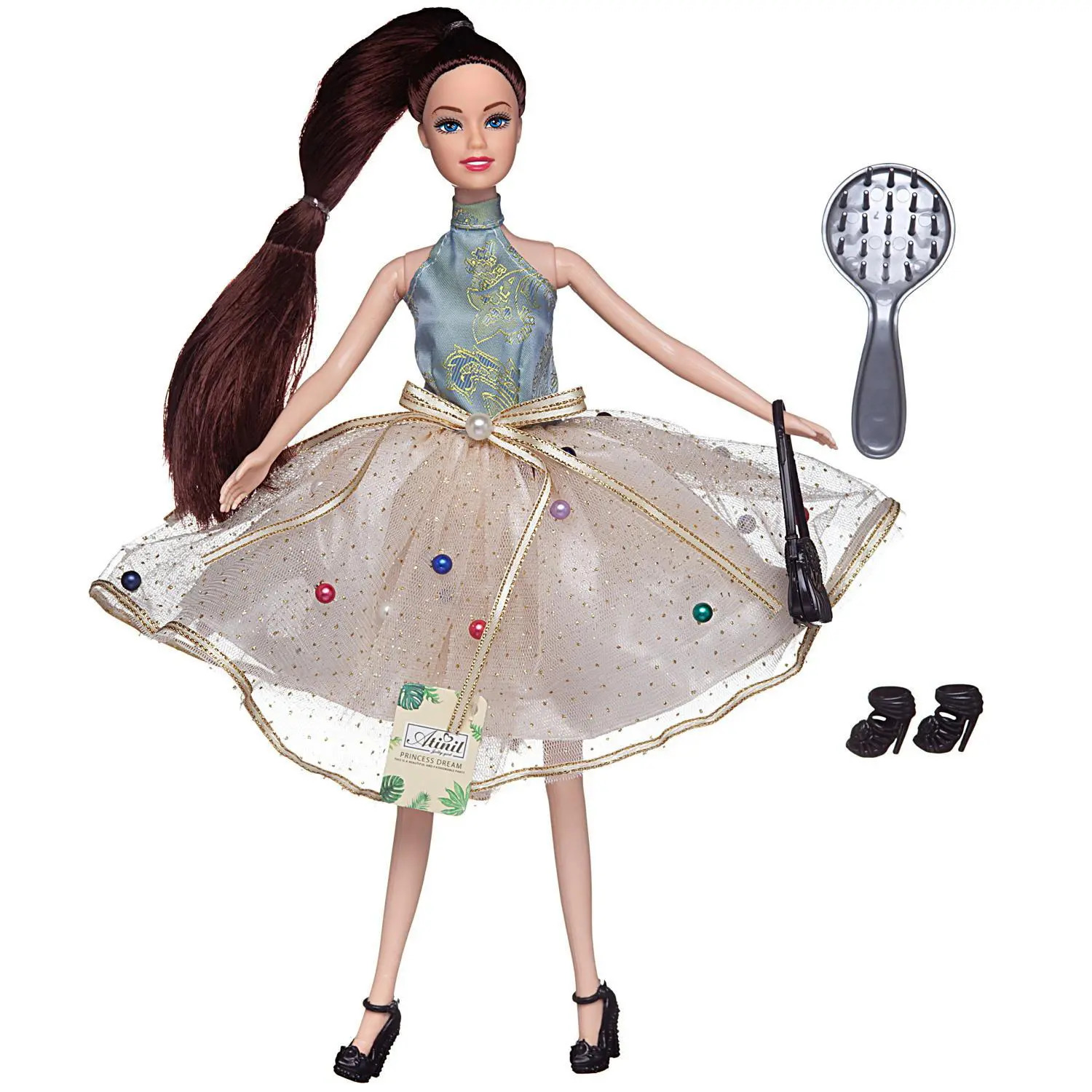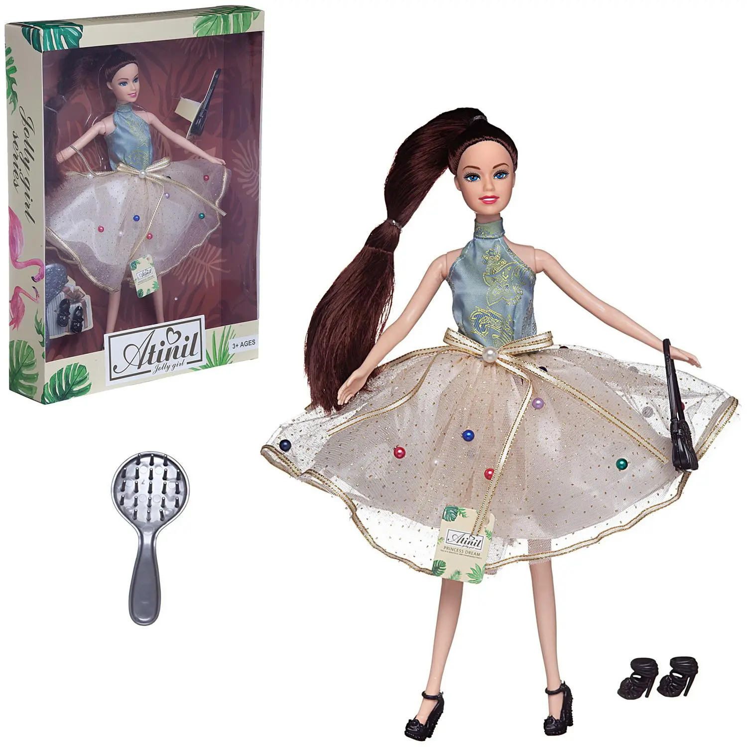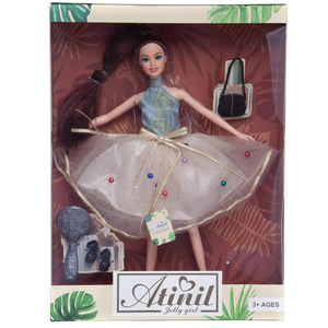 Кукла Atinil выглядит как красивая молодая девушка, которая разбирается в новинках моды и любит следить за собой. Ребенок, играя с такой куклой, сможет придумать множество различных сюжетов. Также в наборе имеются модные аксессуары. У куклы подвижны части тела, благодаря чему в процессе игры девочка сможет менять положение игрушки.Комплектность: кукла 28см, расческа, сумочка, дополнительная пара туфель.