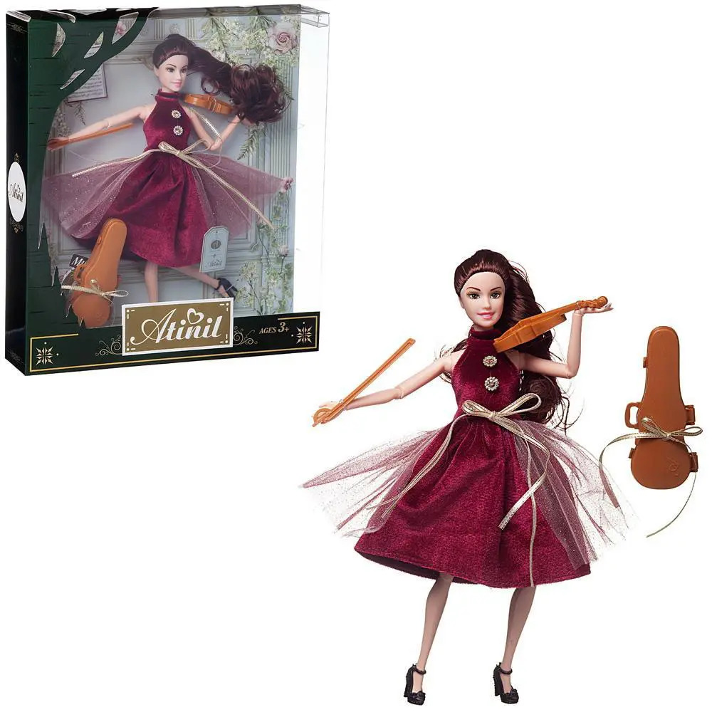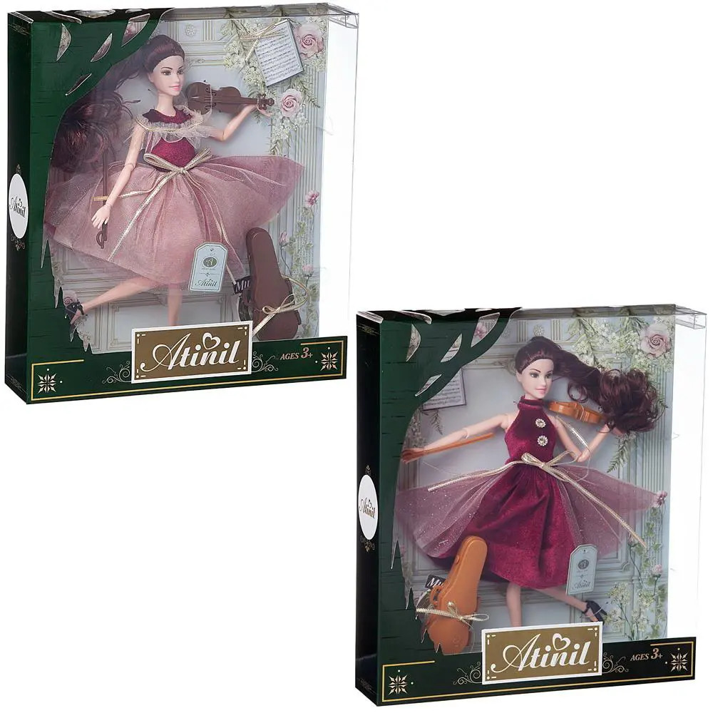 Кукла Atinil выглядит как красивая молодая девушка, которая разбирается в новинках моды и любит следить за собой. Ребенок, играя с такой куклой, сможет придумать множество различных сюжетов. Также в наборе имеются модные аксессуары. У куклы подвижны части тела, благодаря чему в процессе игры девочка сможет менять положение игрушки.Комплектация: кукла, скрипка, смычок, футляр для скрипки.