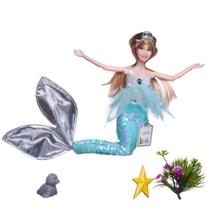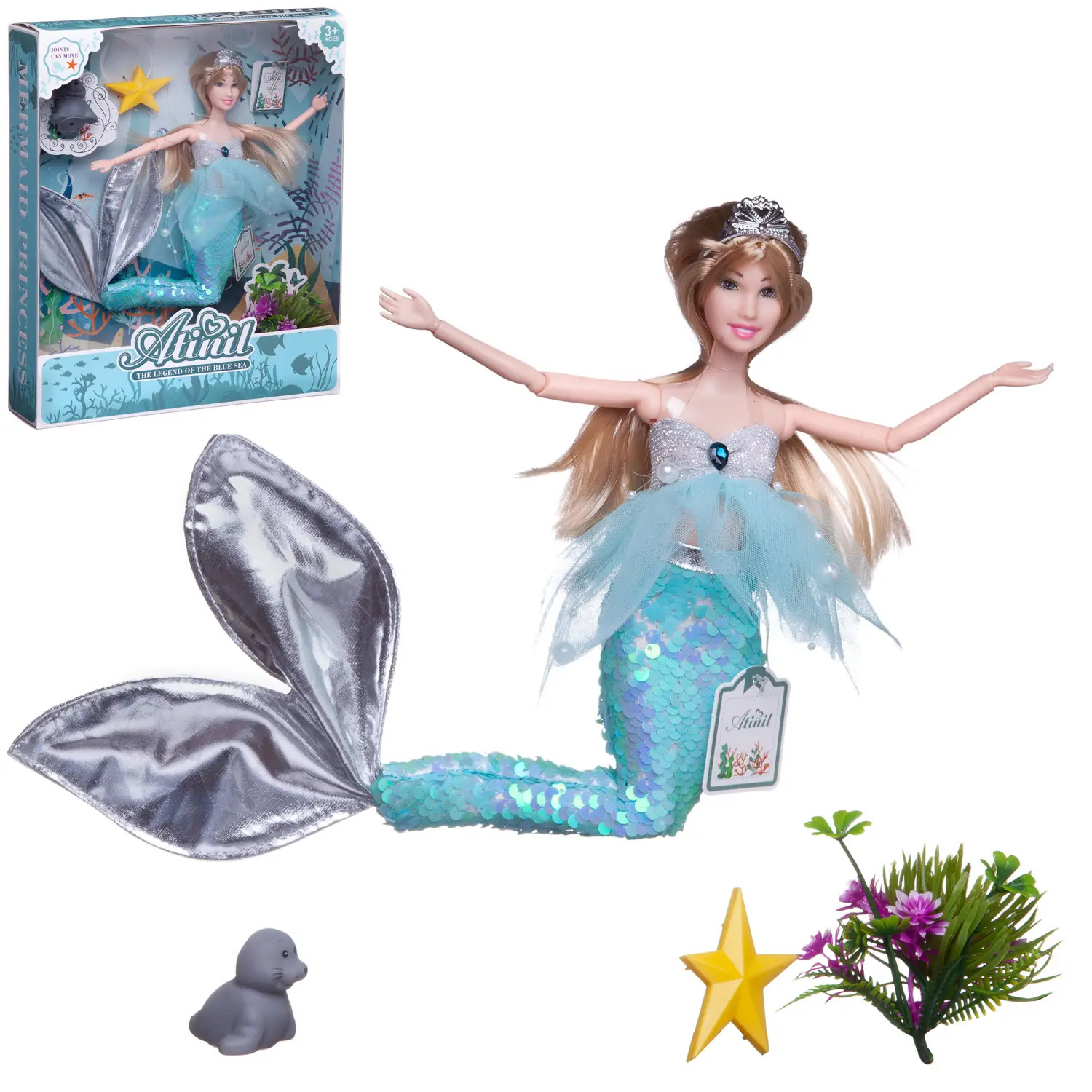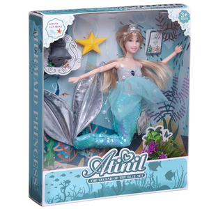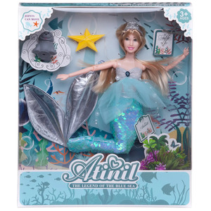 Кукла-русалка Atinil выглядит как красивая молодая девушка, но с шикарным русалочным хвостом. Ребенок, играя с такой куклой, сможет придумать множество различных сюжетов. Также в наборе имеются модные аксессуары. У куклы подвижны части тела, благодаря чему в процессе игры девочка сможет менять положение игрушки.Комплектность: кукла, питомец, букет цветов, звезда.