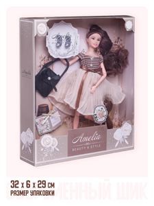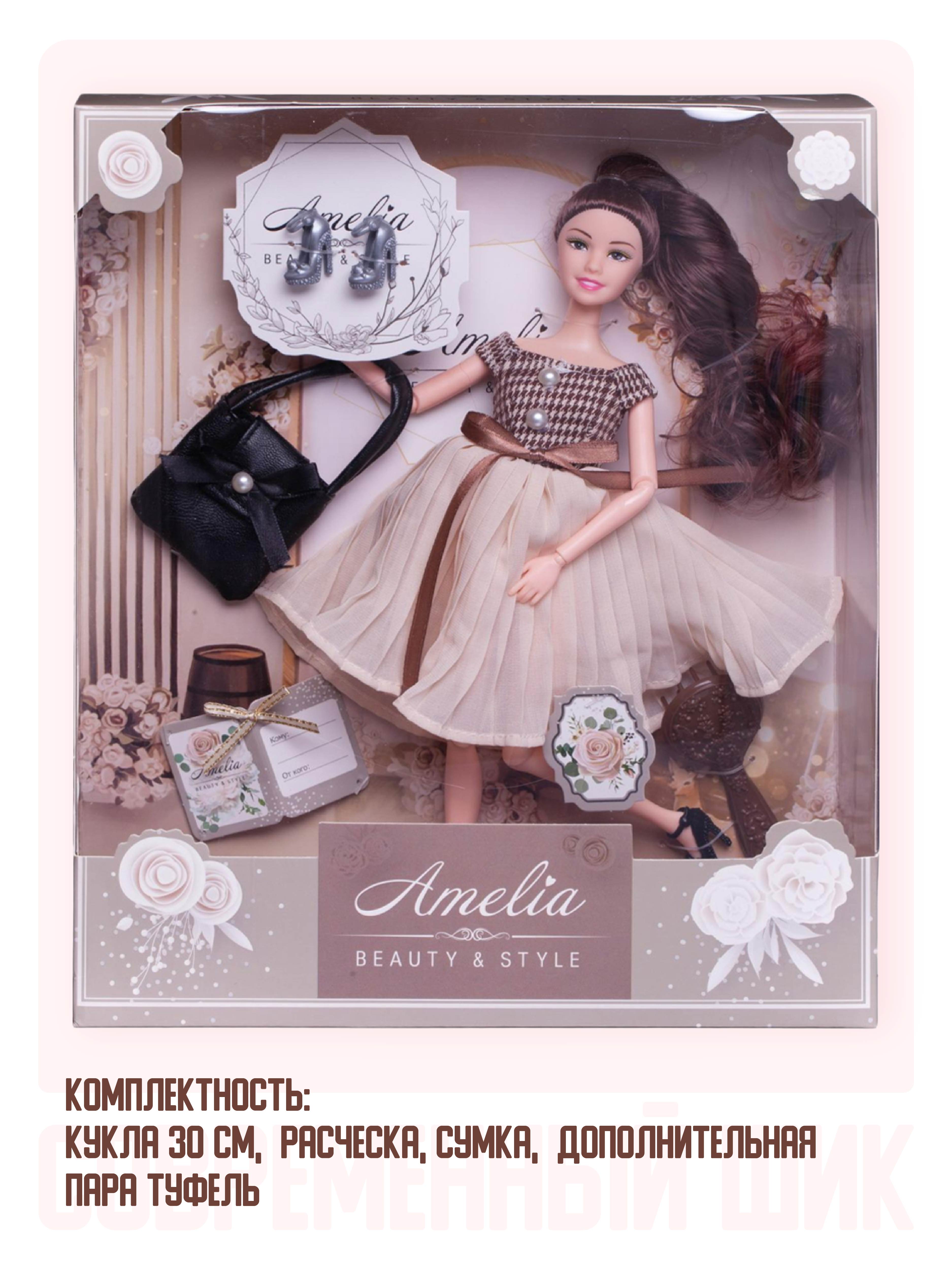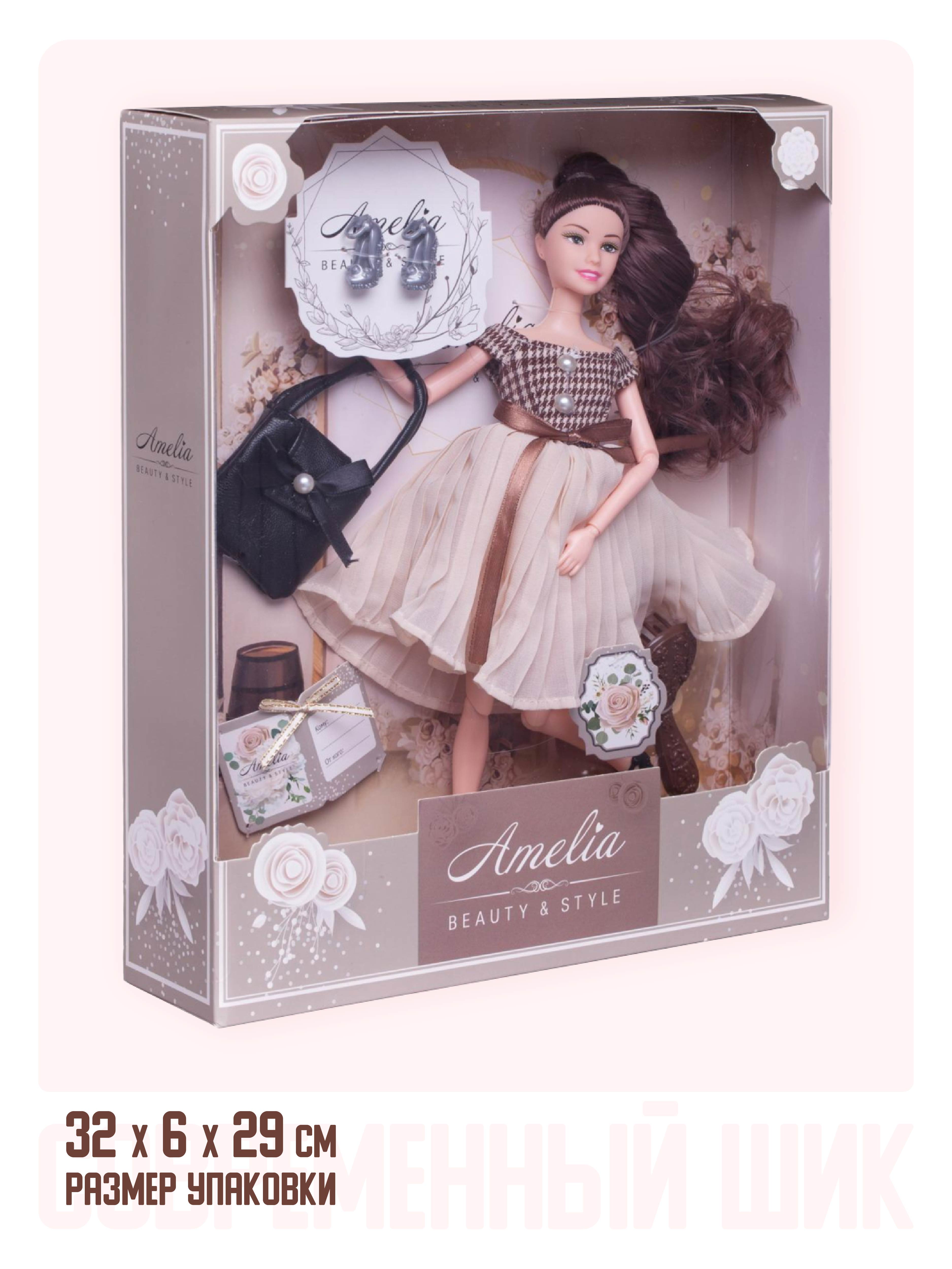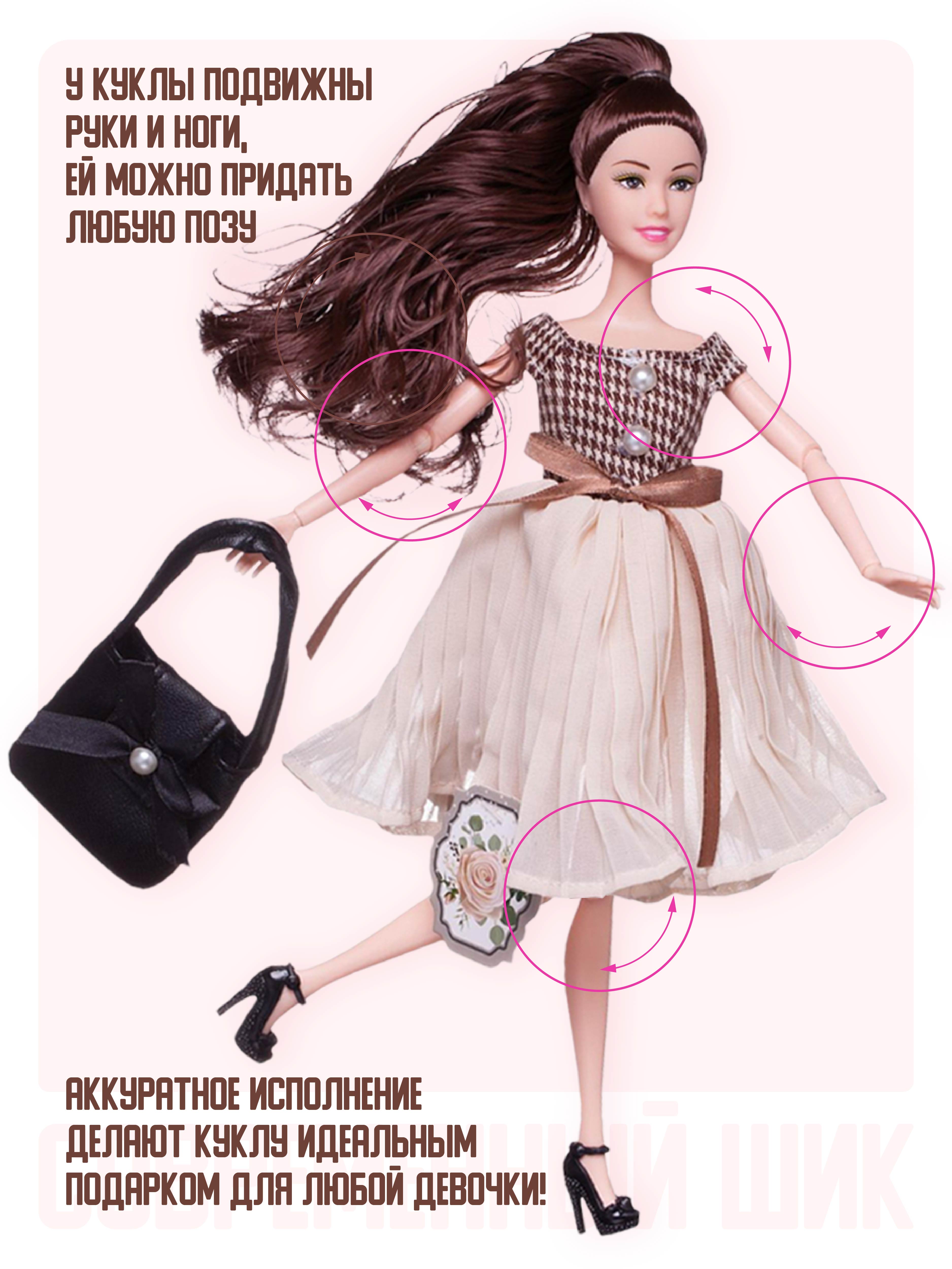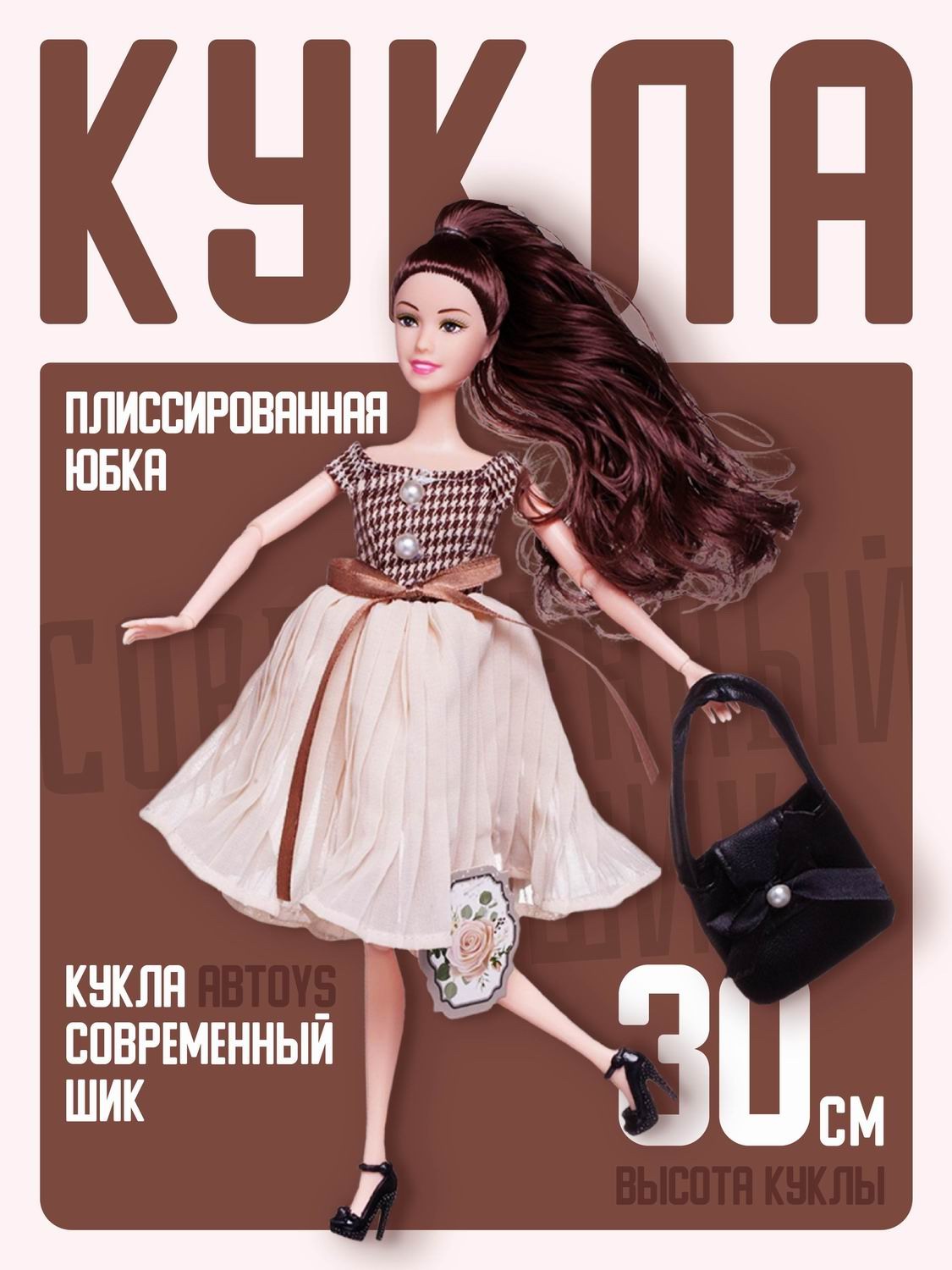 Кукла ABtoys "Современный шик"в платье с плиссированной юбкой, черная сумка, темные волосы 30см