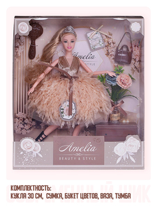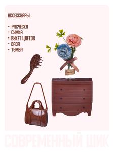 Кукла выглядит как красивая молодая девушка, которая разбирается в новинках моды и любит следить за собой. Ребенок, играя с такой куклой, придумает разные сюжеты, в которых он использует все наряды для игрушечной подружки. Также в наборе имеются модные аксессуары. У куклы подвижны части тела, благодаря чему в процессе игры девочка сможет менять положение игрушки.Комплектность: кукла, сумка, букет цветов, ваза, тумба.