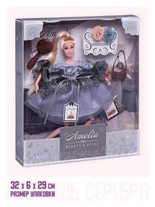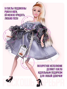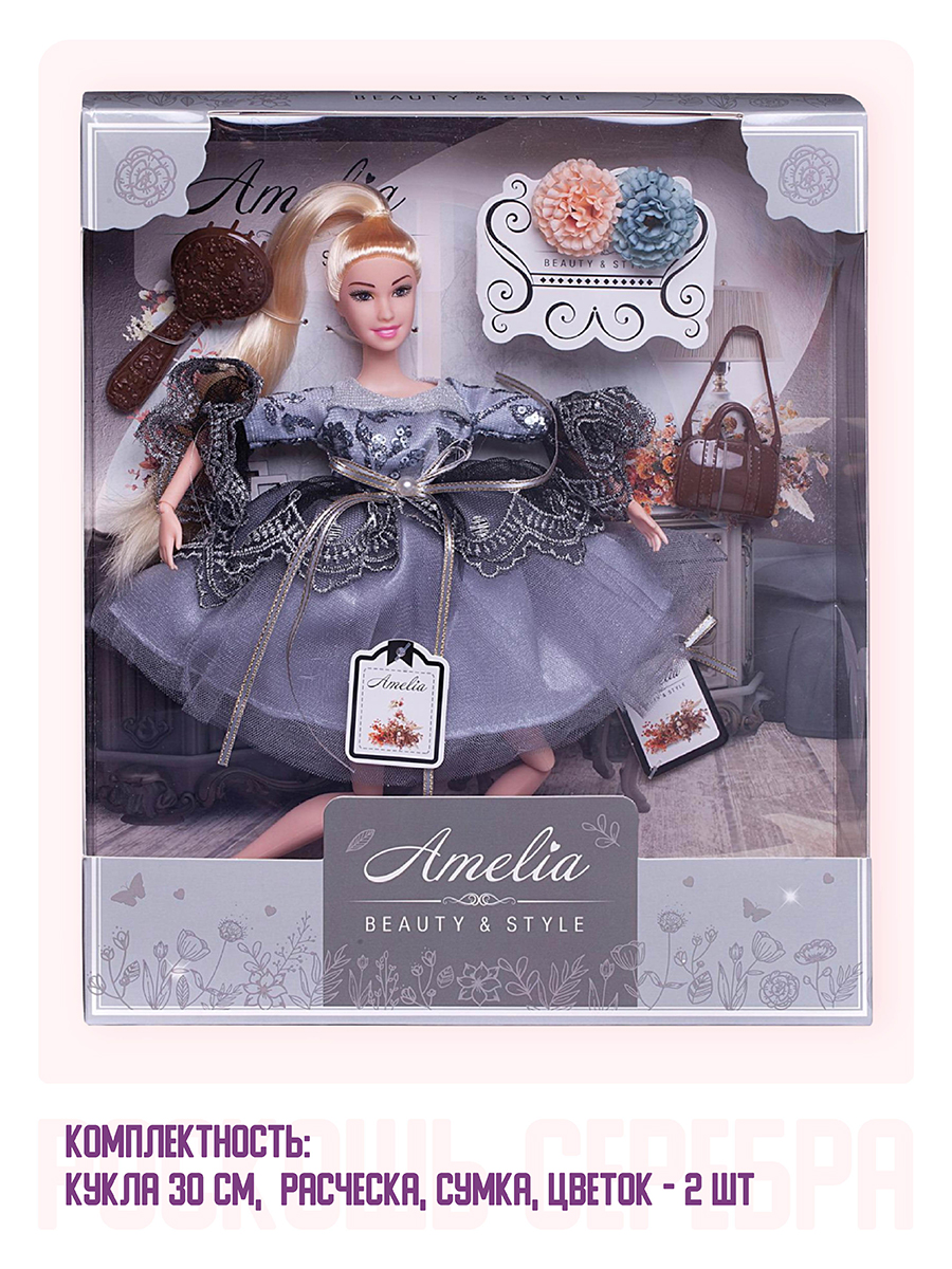 Кукла ABtoys "Роскошь серебра" в платье с ажурными рукавами с двухслойной юбкой, светлые волосы 30см