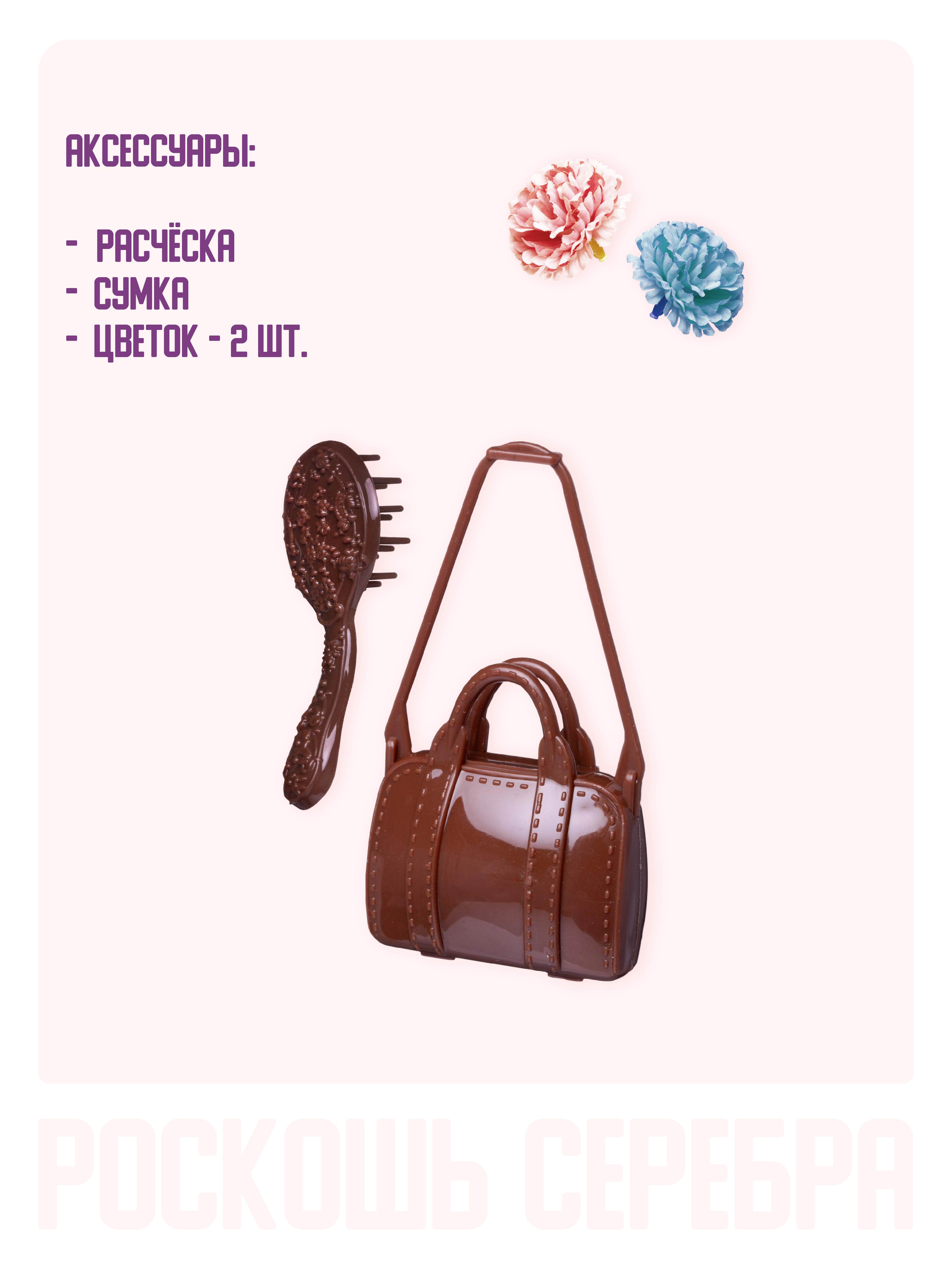 Кукла выглядит как красивая молодая девушка, которая разбирается в новинках моды и любит следить за собой. Ребенок, играя с такой куклой, придумает разные сюжеты, в которых он использует все наряды для игрушечной подружки. Также в наборе имеются модные аксессуары. У куклы подвижны части тела, благодаря чему в процессе игры девочка сможет менять положение игрушки.Комплектность: кукла, расческа, сумка.