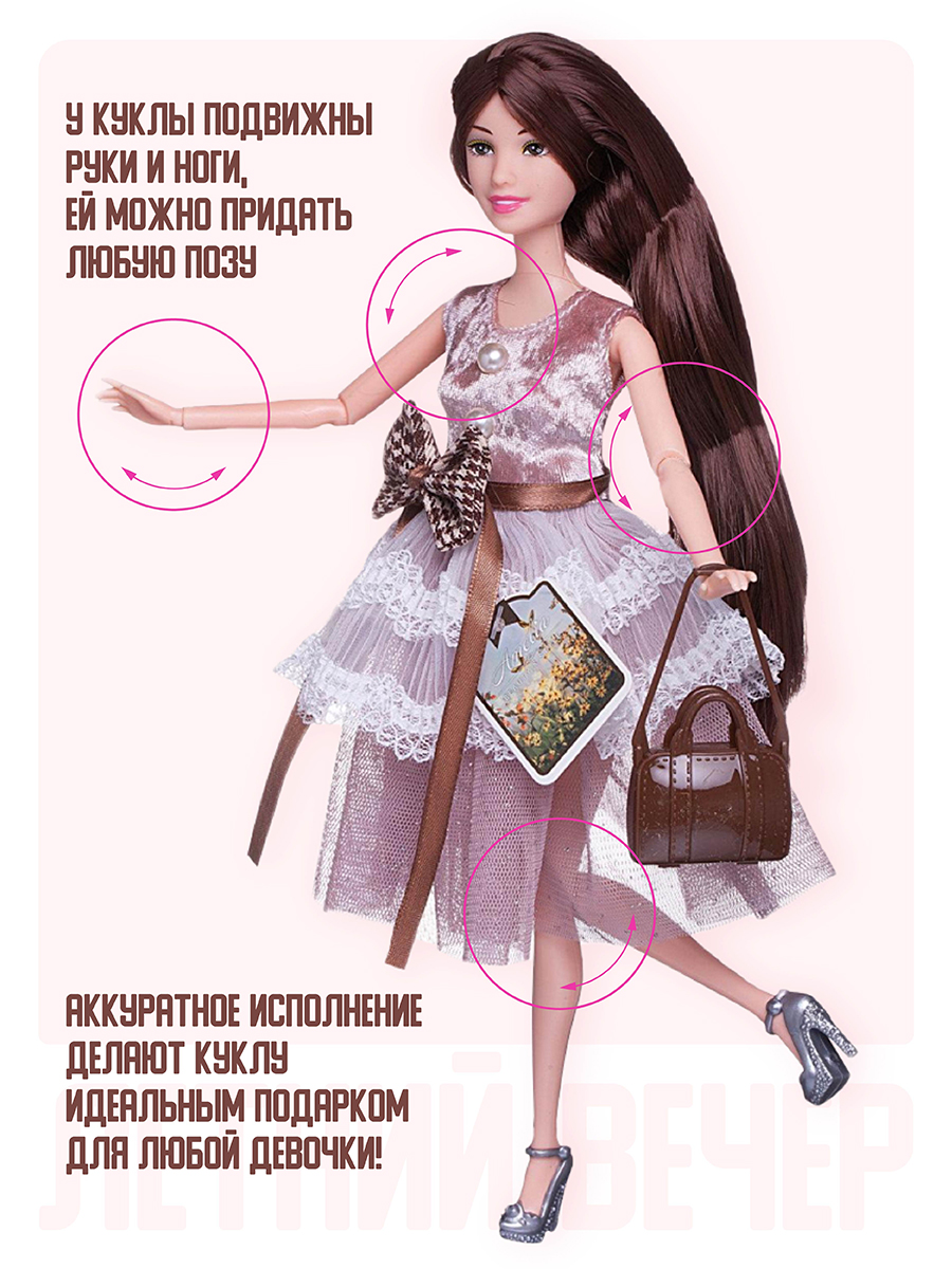 Кукла ABtoys "Летний вечер" в платье без рукавов с двухслойной юбкой, темные волосы 30см