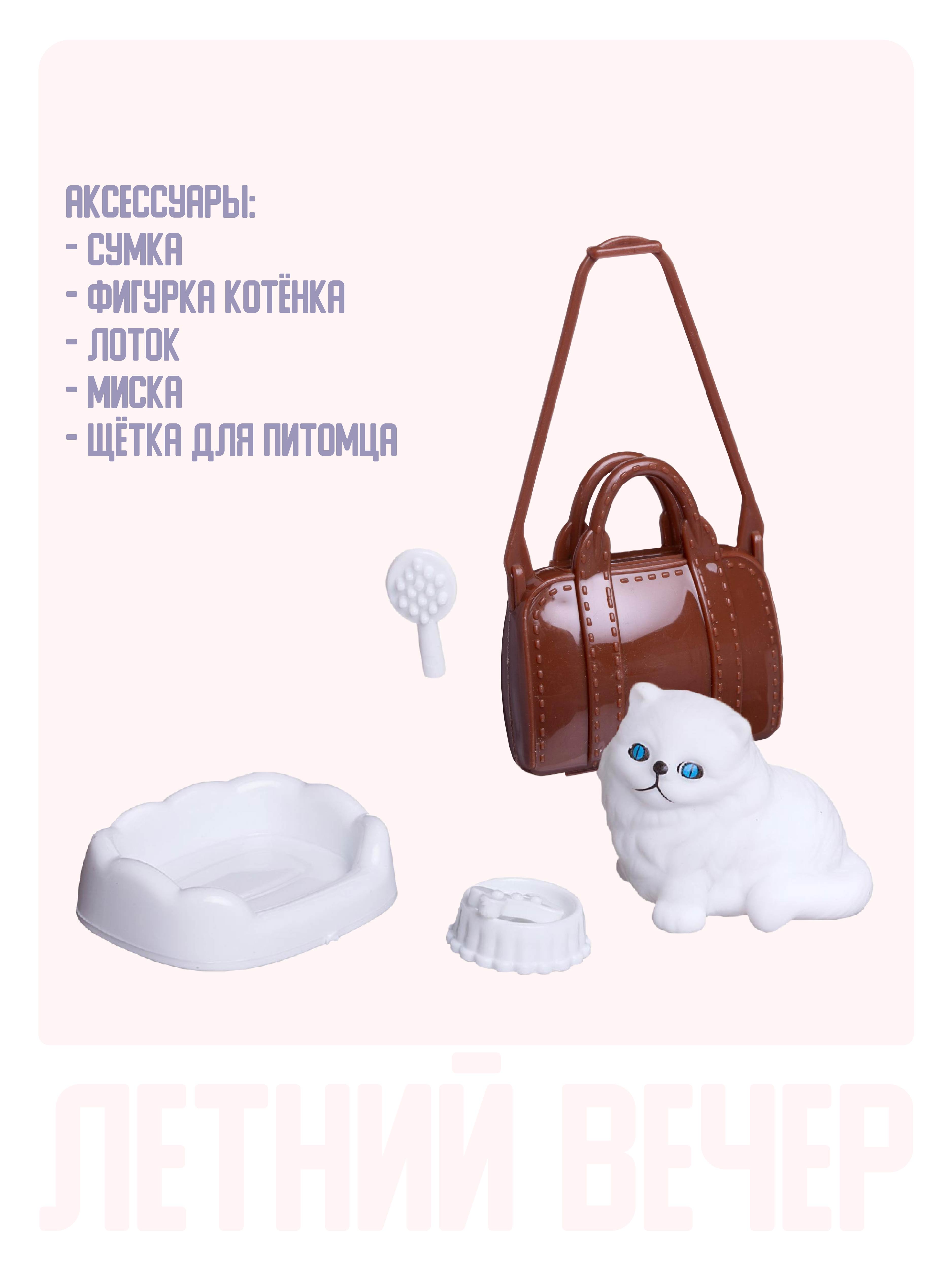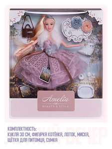 Кукла выглядит как красивая молодая девушка, которая разбирается в новинках моды и любит следить за собой. Ребенок, играя с такой куклой, придумает разные сюжеты, в которых он использует все наряды для игрушечной подружки. Также в наборе имеются модные аксессуары. У куклы подвижны части тела, благодаря чему в процессе игры девочка сможет менять положение игрушки.Комплектность: кукла, фигурка котенка, лоток, миска, щетка для питомца, сумка.