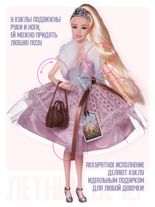 Кукла ABtoys "Летний вечер" с диадемой, в платье с меховой накидкой, светлые волосы 30см