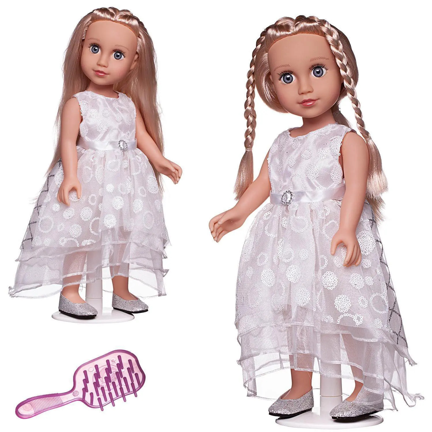 Комплектность: кукла, подставка, расческа.