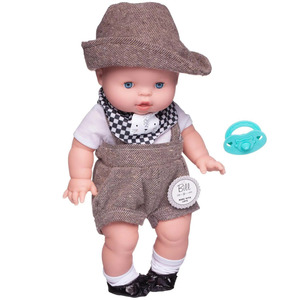 Этот очаровательная пупсик станет приятным сюрпризом для любой девочки. Он похож на настоящего малыша, играя с пупсом, ребенок будет учиться заботиться о младших. Пупс стильно одет в белую кофточку, серые шортики и такого же цвета шляпку, на его шее повязан клетчатый платочек с забавным кроликом. Дополняет набор соска. Пупс упакован в оригинальную коробку с окошком.Высота пупса 32см. Глаза не закрываются.